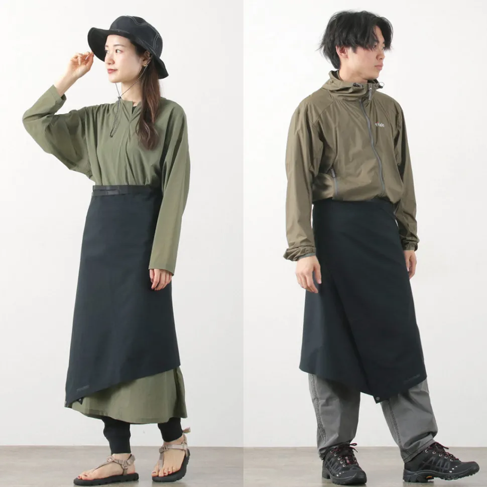 The wrap-around construction design can be worn wrapped over pants for easy on and off. This item is very useful in a wide range of situations, such as waiting for the bus on a rainy day or unexpected weather while out and about, by carrying it in a bag as well as in hard outdoor scenes.