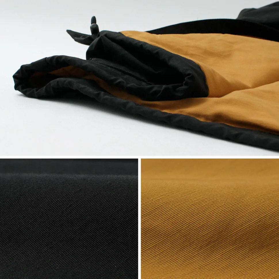 Made from “60/40 cloth,” a fabric blend of 60% cotton and 40% nylon. When wet, the cotton fibers swell, tightening the weave to repel water while still allowing for breathability, making it an original functional fabric. The lining is made from the same fabric for a cohesive finish.