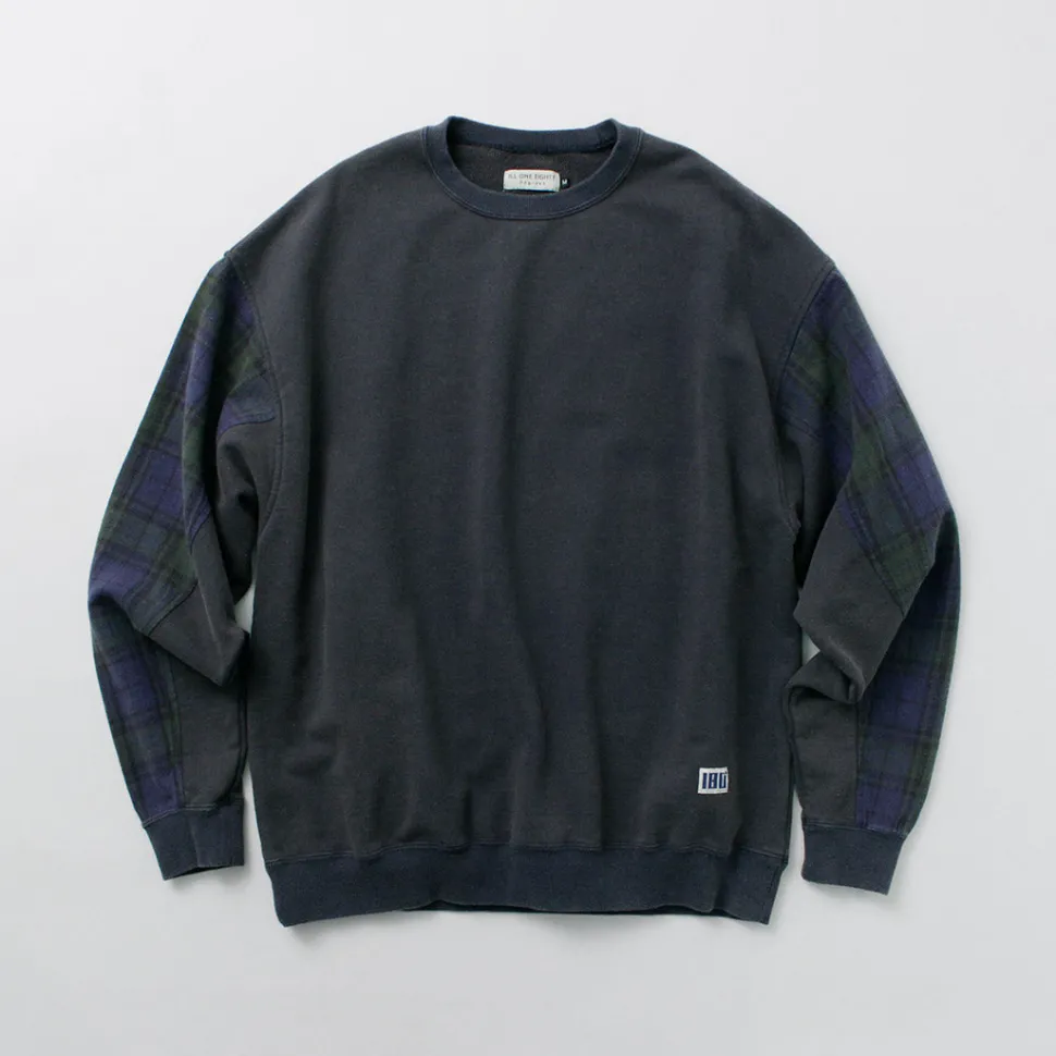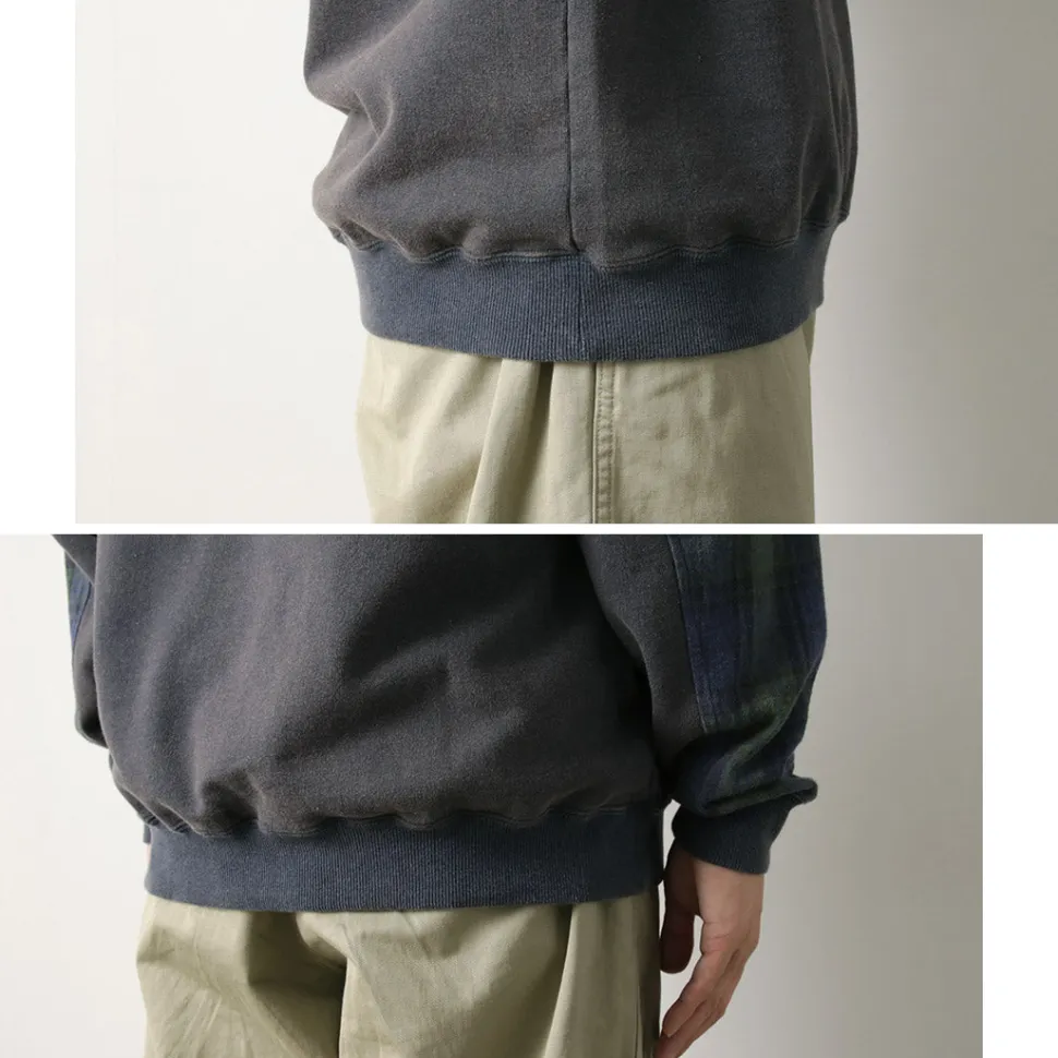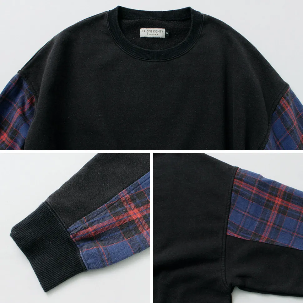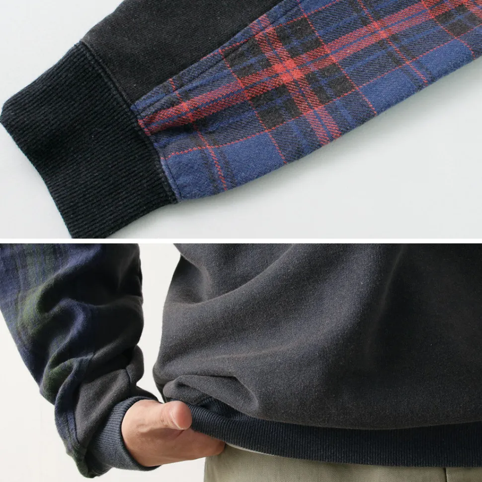 The base fabric is 100% cotton sweat fabric with a dry touch, while the sleeves are made from 100% cotton twill check fabric. Both materials offer a smooth feel, ensuring a comfortable wearing experience. The fabric thickness is just right—not too thin, not too thick—making it perfect to wear on its own in the fall.