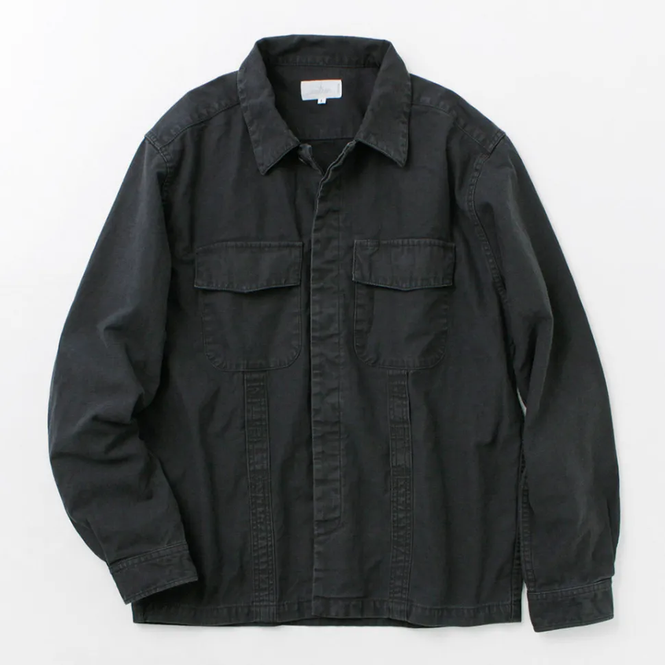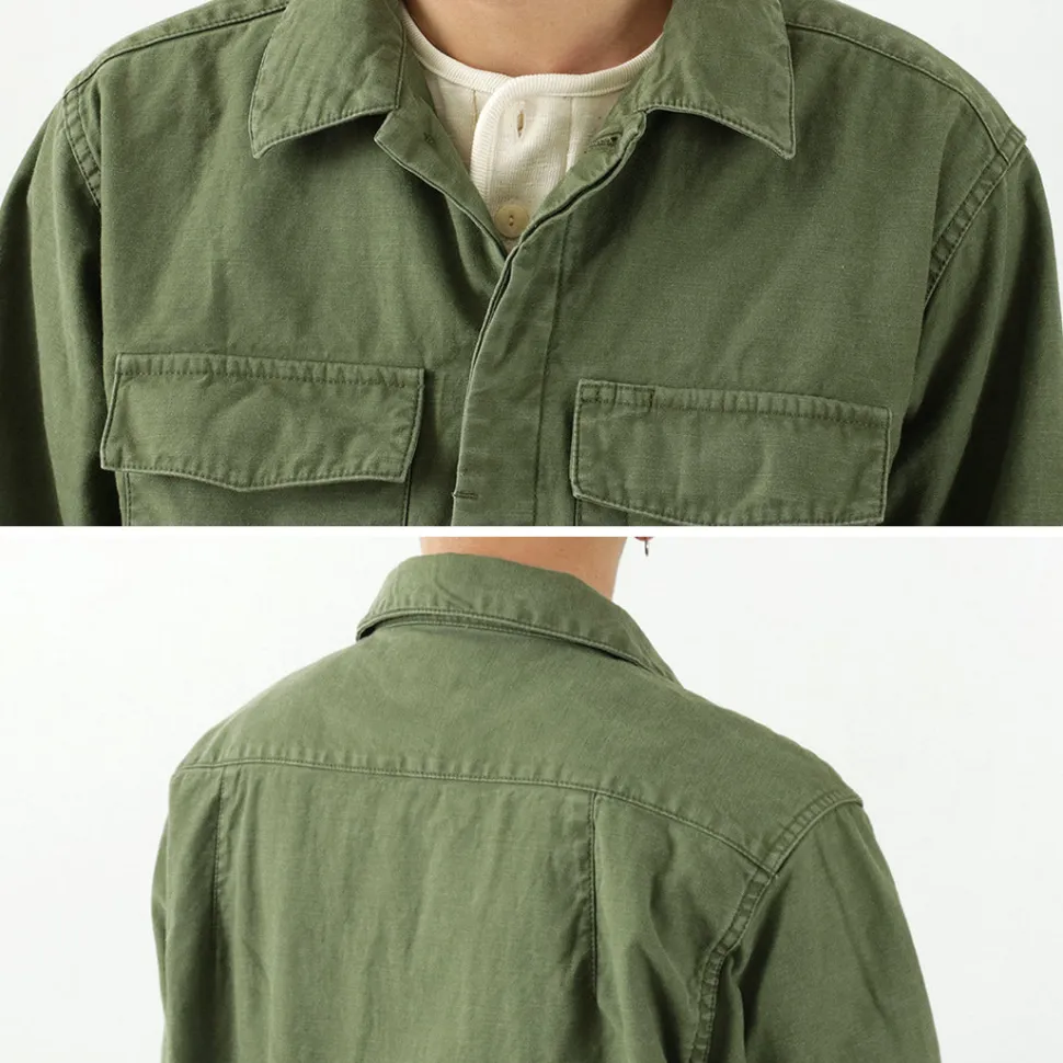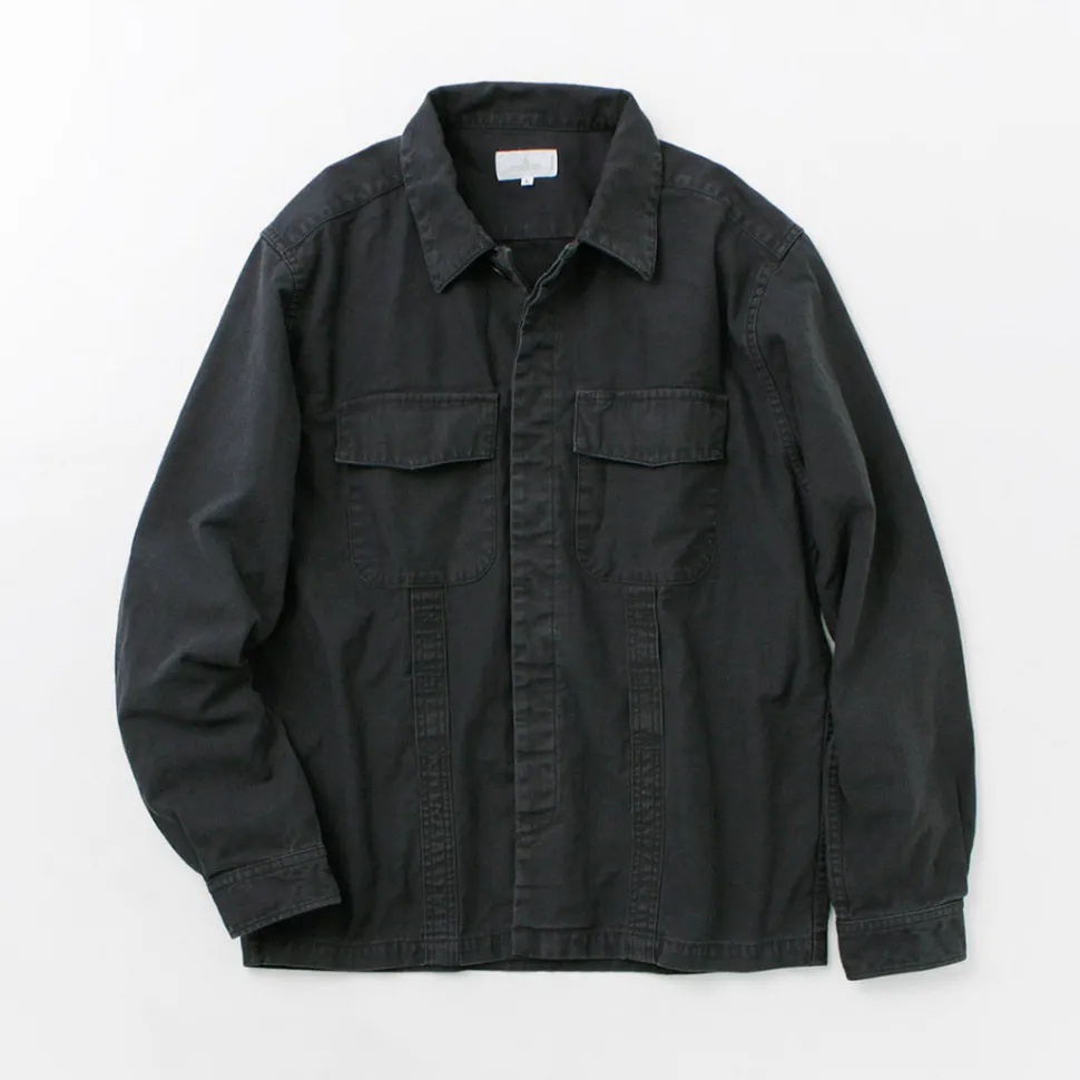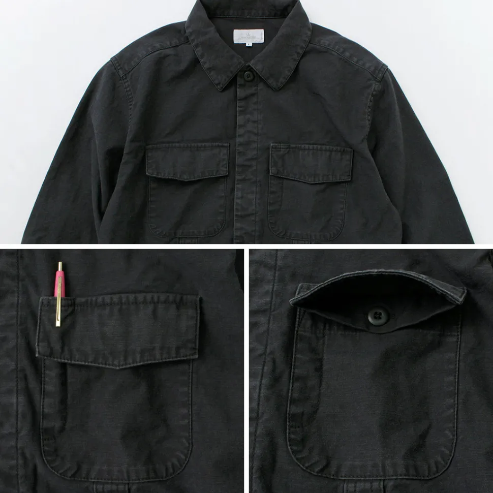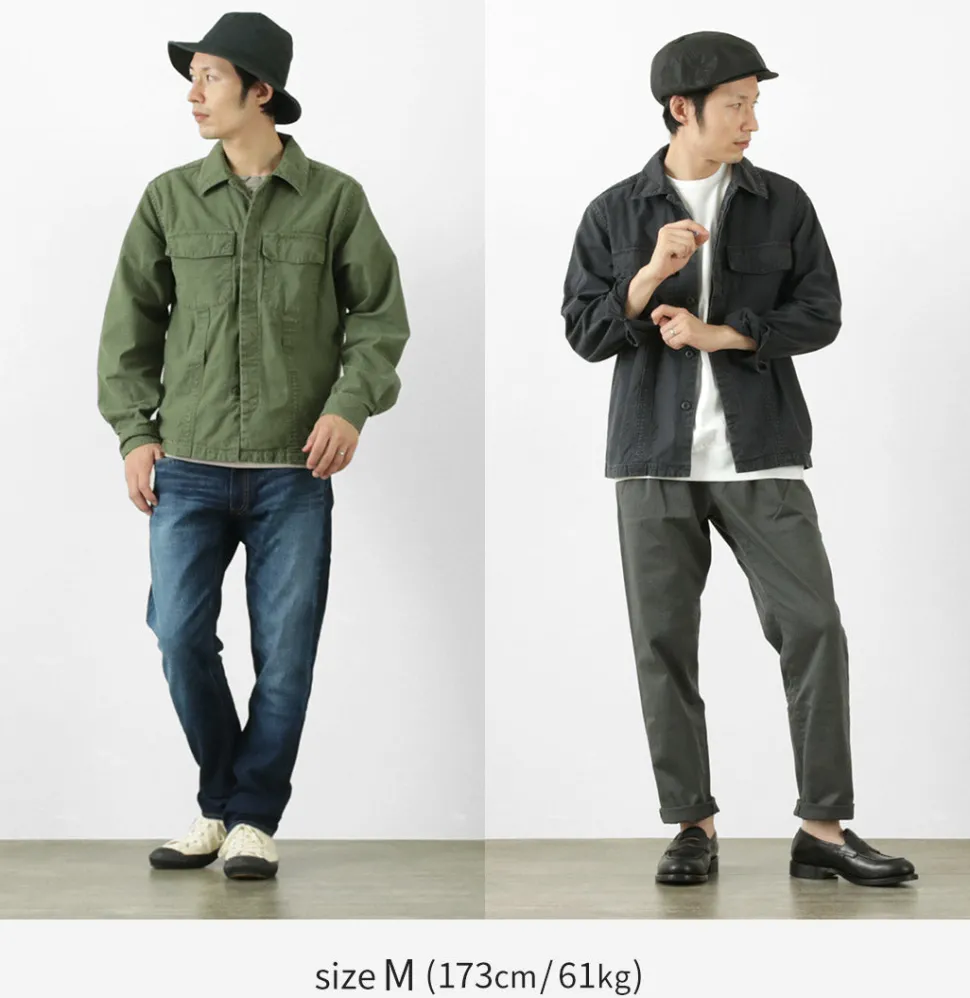 The length is shorter than the average shirt, giving it a clean look, and the arms are slim, so it can be easily worn over a T-shirt. The stylish silhouette has been remade into a modern-style silhouette while following authentic military details.