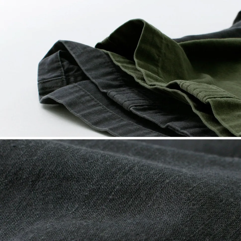 The sulfide-dyed fabric does not fade as much as indigo-dyed fabric, and the more you use it, the more the color will fade moderately and the more its unique texture will increase. Like denim, you can enjoy growing your own color, and the more you use it, the more it will change into a piece you love.
