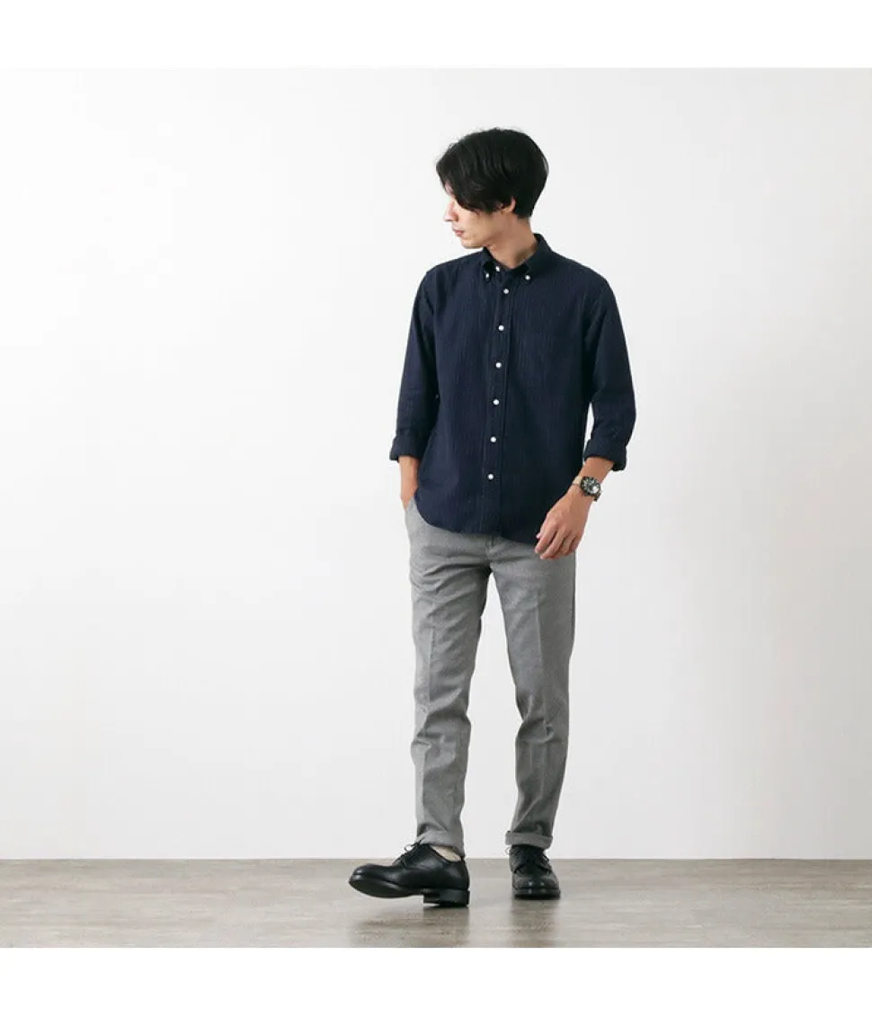 Based on our popular JAPAN BLUE JEANS x ROCOCO Officer Tapered trousers, this elegant trouser is designed for autumn and winter. The Sorotex Full Furan material, born from Japanese technology, is used to create a warm, wool-like look. The material is polyester, so it is washable and easy care, making it a very easy piece to handle. These pants have a mature visual appeal, yet are versatile enough to be worn in a wide range of situations both on and off the job.