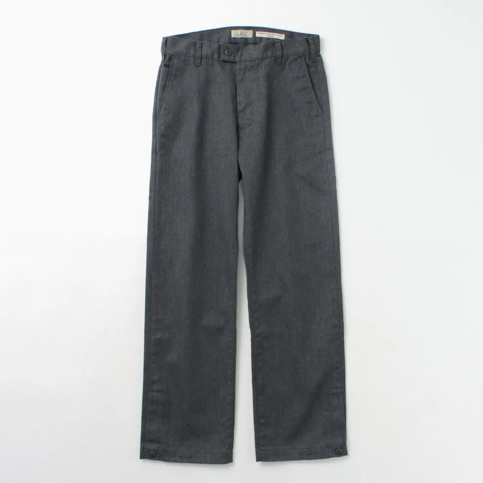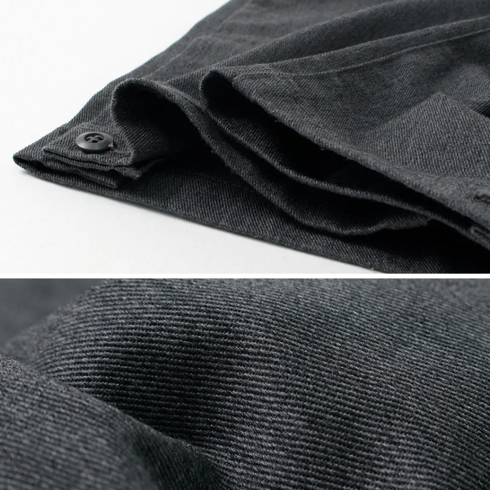 JAPAN BLUE JEANS introduces ROCOCO’s special order work pants.ROCOCO is haku-clothing’s parent brand. These mature work pants are made of an elegant, heather-like fabric with excellent breathability and durability. With buttons at the hems, you can enjoy either a straight silhouette with a hint of work or a more dynamic silhouette with a cinched hem.