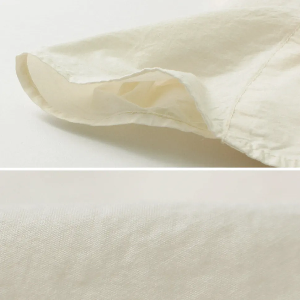Basic silhouette with a good amount of room in the body width. The convenient length of the garment prevents the wearer from feeling drab. This item can be worn alone, of course, but also as a weave in spring, autumn and other seasons.