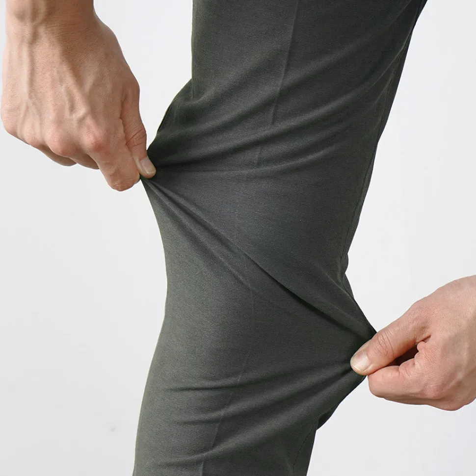 The exquisite lines of these tapered pants are neither too thin nor too thick.