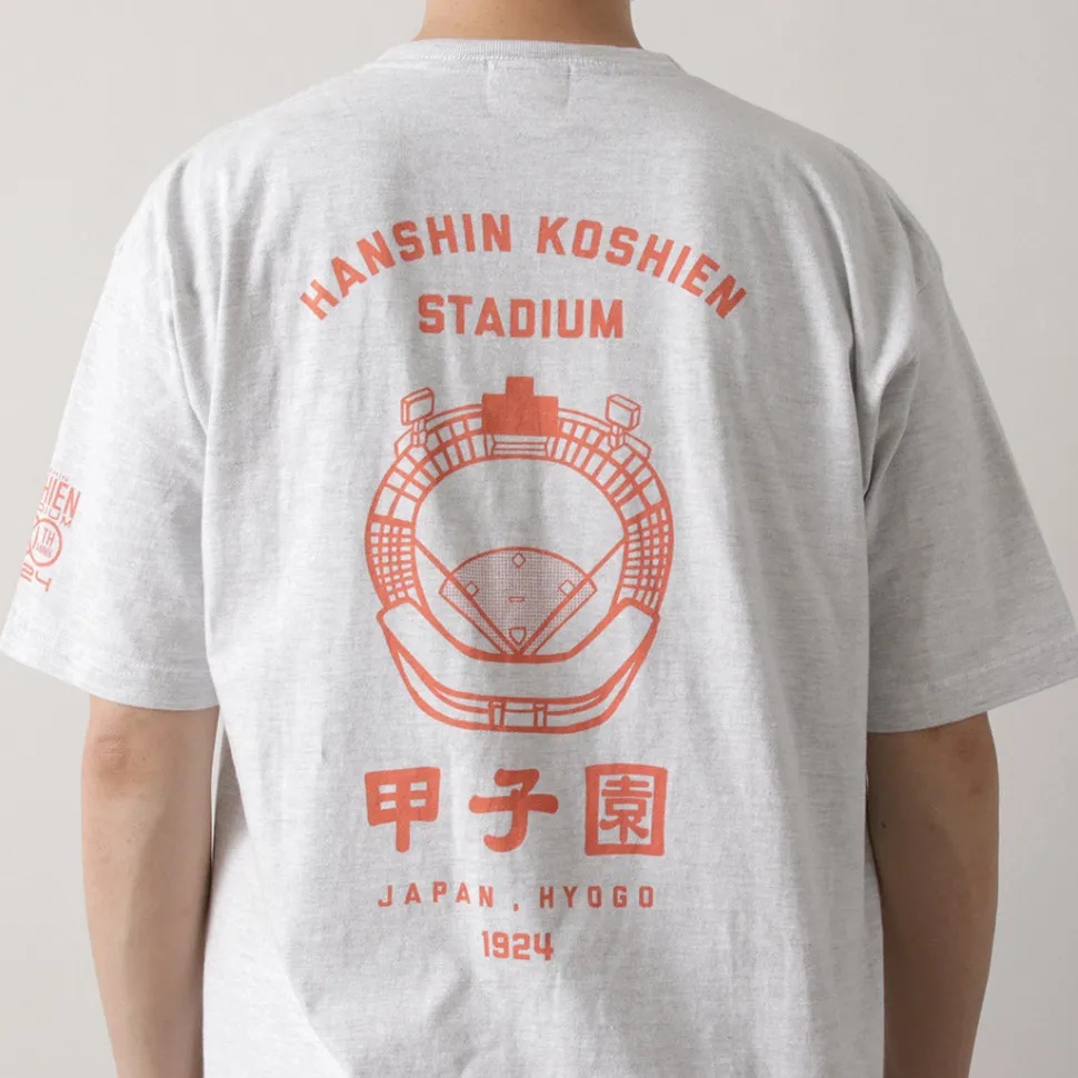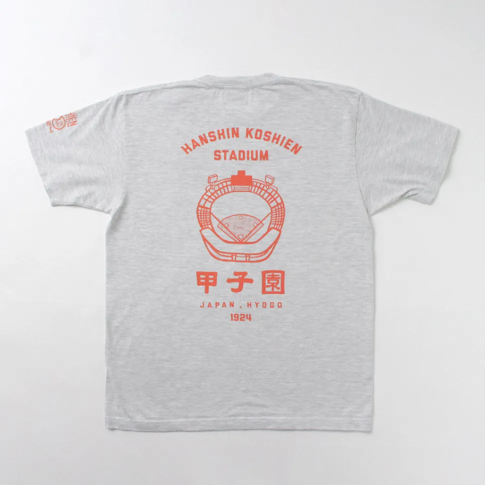 The back features a classic stadium illustration, making this an official collaboration item with the Hanshin Koshien Stadium, perfect for enthusiastic fans.