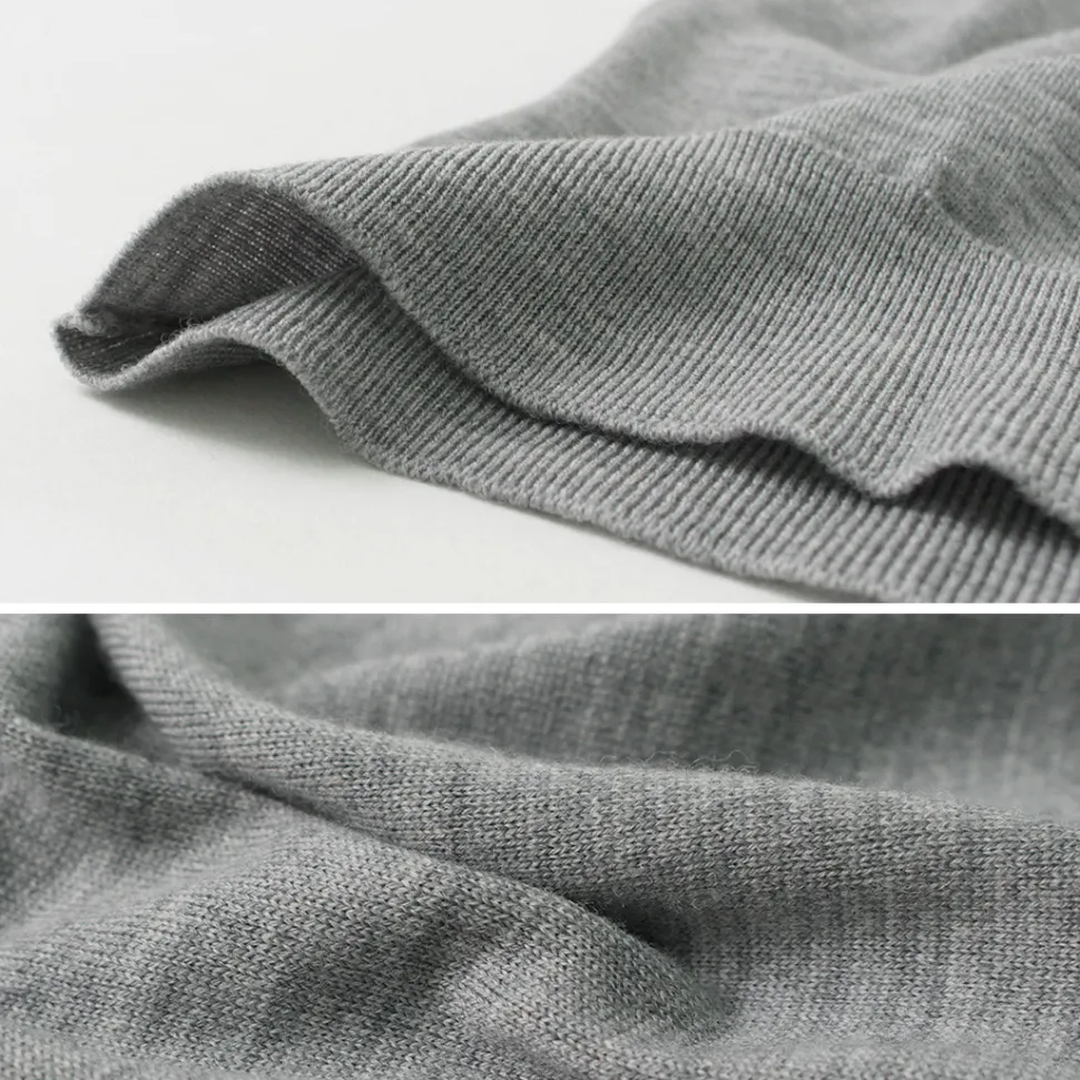 The finest merino wool is used for the expression and the beautiful silhouette with fine dimensional adjustment. The careful sewing by the craftsmen is also remarkable. Please enjoy the strength of this knitwear with a long history made of high quality materials.
