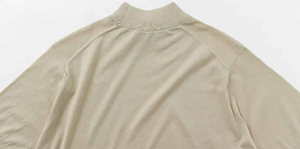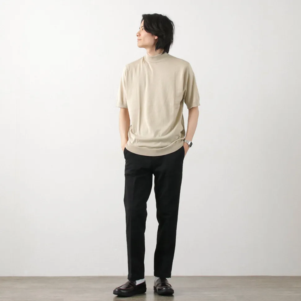 This is a special-order model for Japan, which is a short-sleeved mock-neck knit by JOHN SMEDLEY that is often used as an inner layer for dress scenes, but has a slightly wider body to make it easier to use as a single piece.