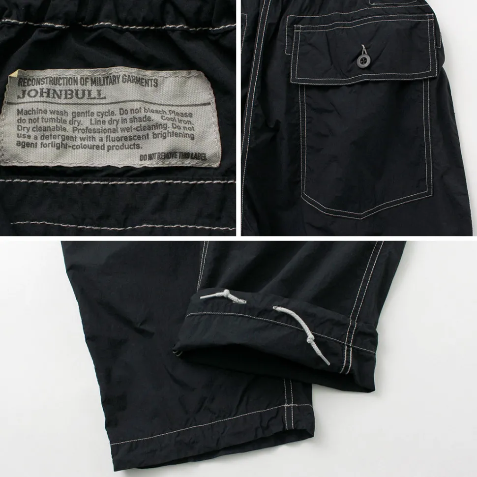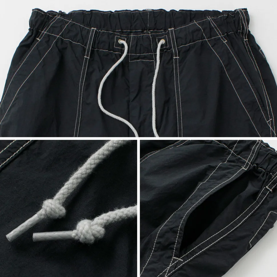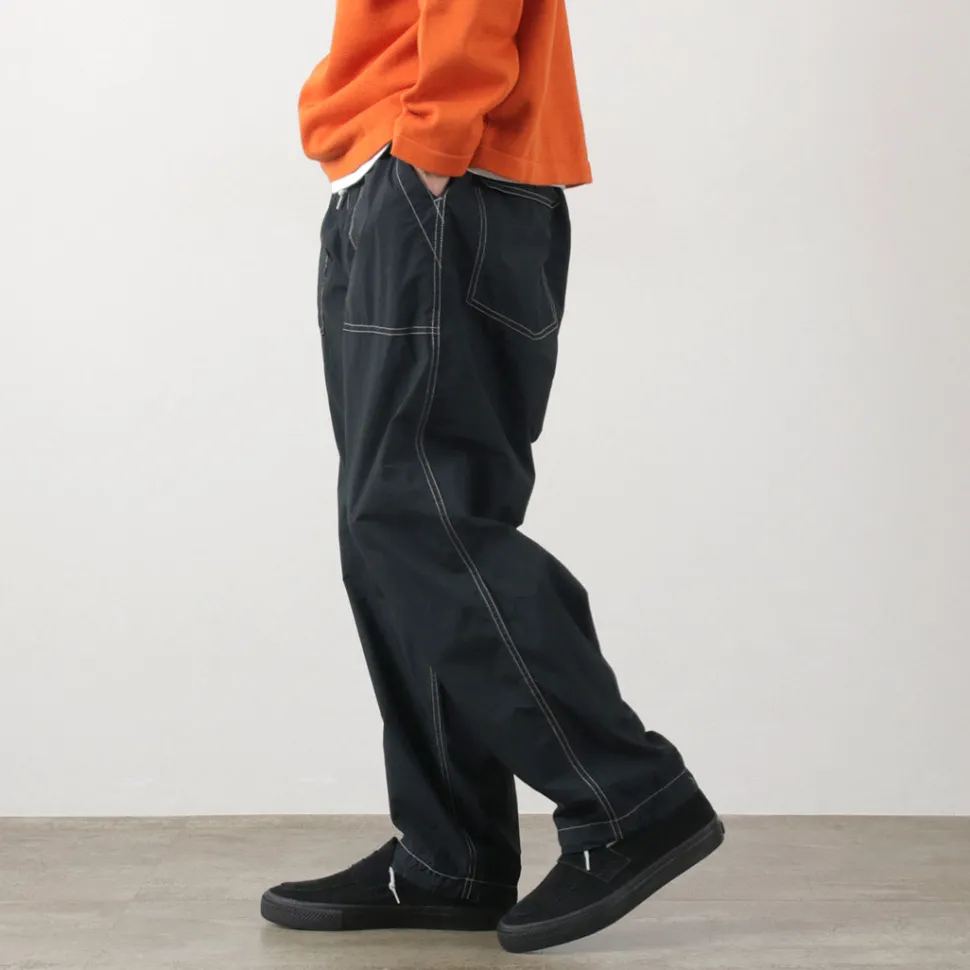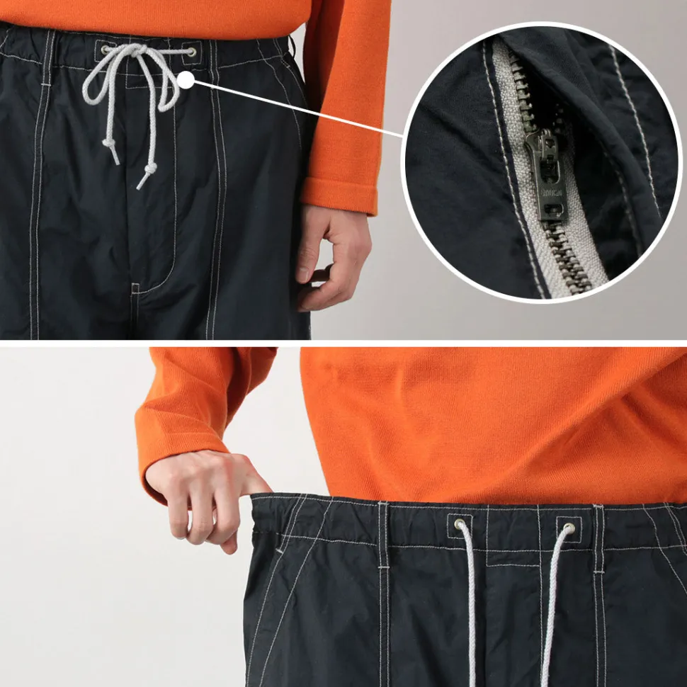 This item is based on baker pants and combines the details of easy pants. The fabric is made of lightweight nylon material, and is finished with a tasteful atmosphere by applying garment dyeing. In addition, the use of a special processing technology gives the item various functionalities that can be expected to have a wellness effect.