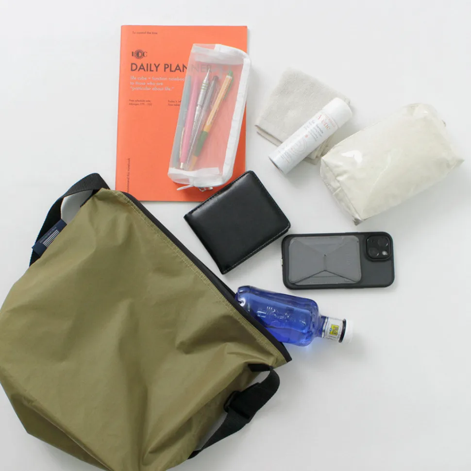 Despite being thin and lightweight, the bag is spacious enough to hold A4-sized documents, water bottles, and other essential items for outings. On days when you carry less, you can let the bag sag and carry it nonchalantly over your shoulder for a laid-back style.