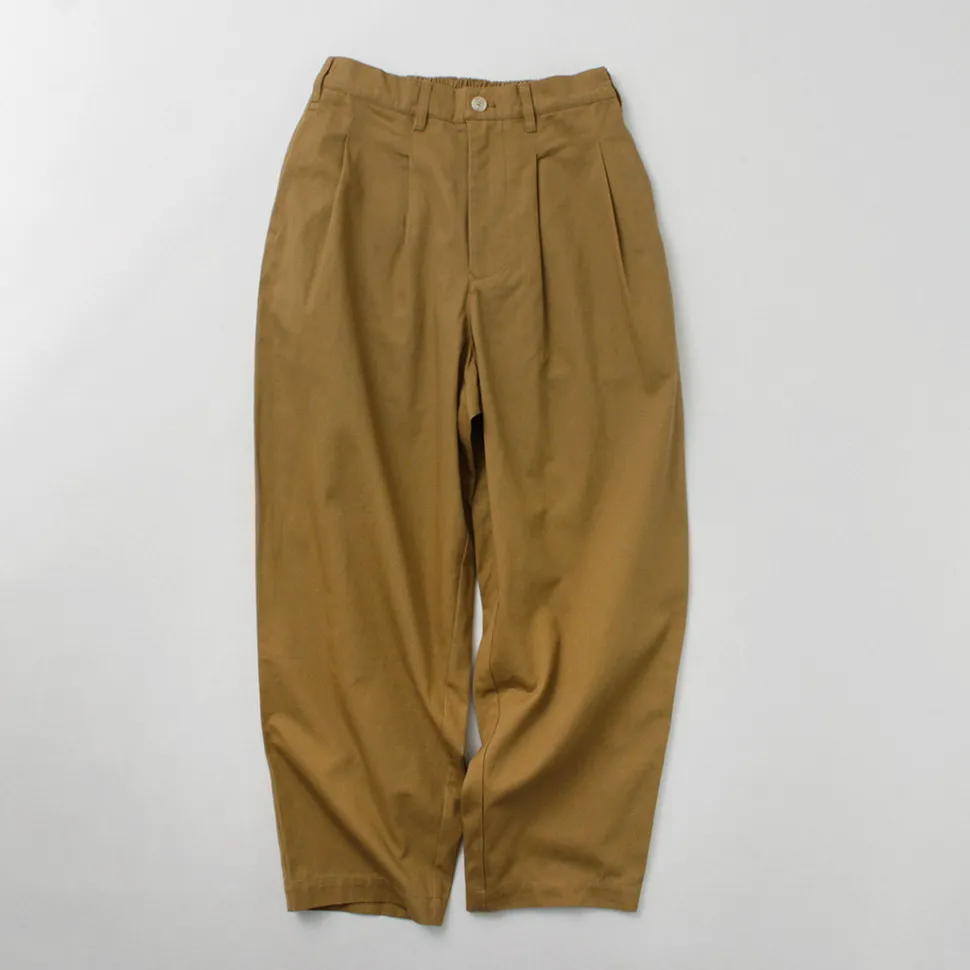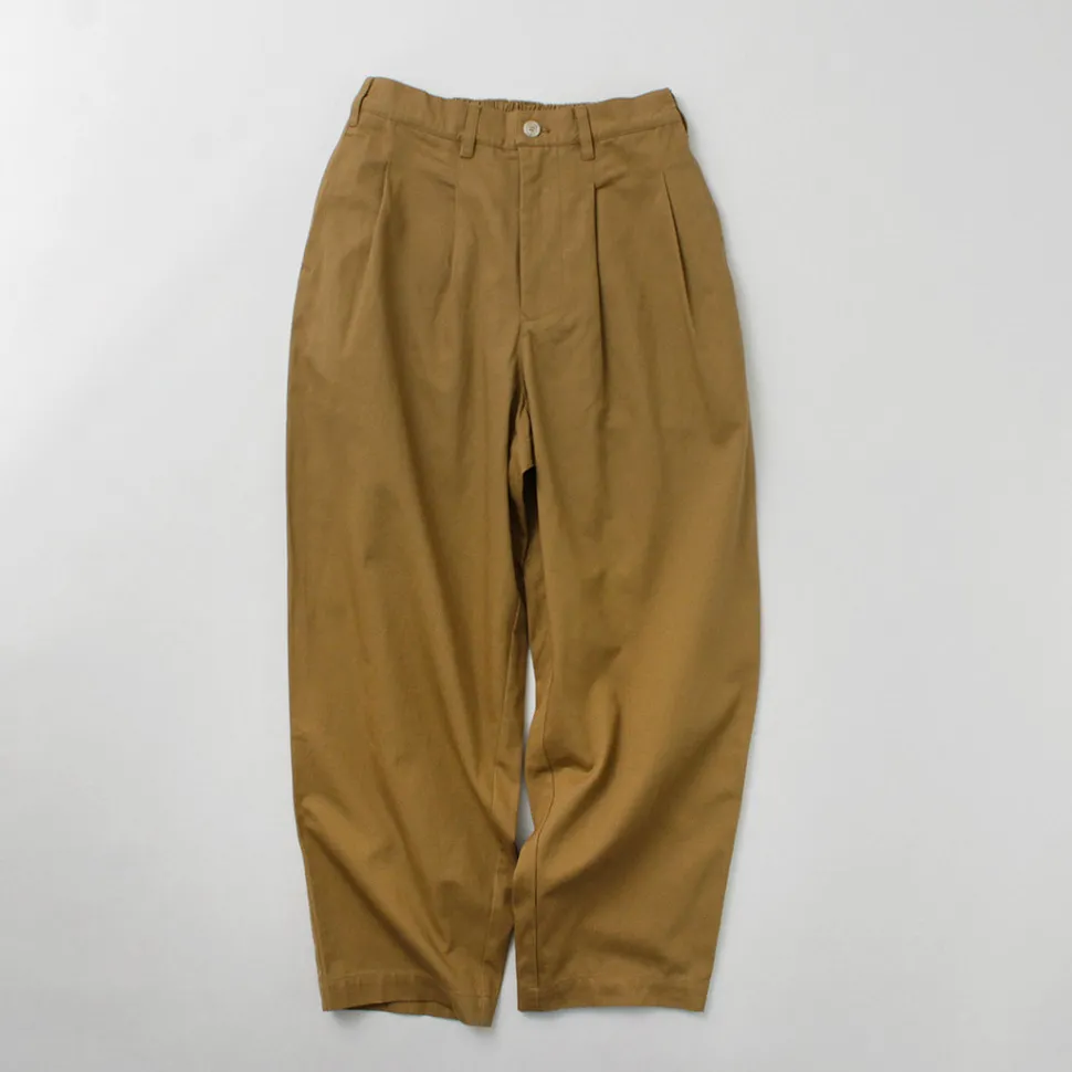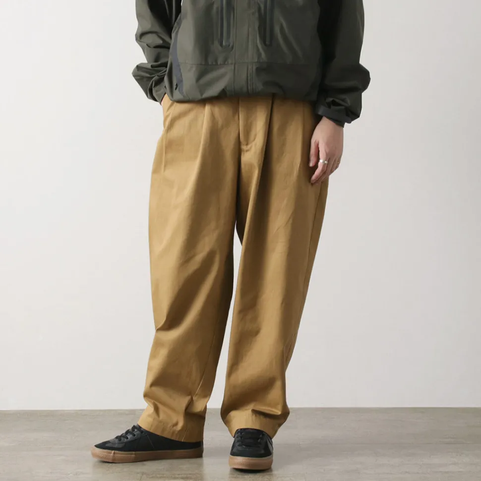 With two tucks at the waist and a tapered shape from the wide thigh area to the hem, these pants feature a unique cocoon silhouette. The design is functional, comfortable, and easy to incorporate into daily wear.