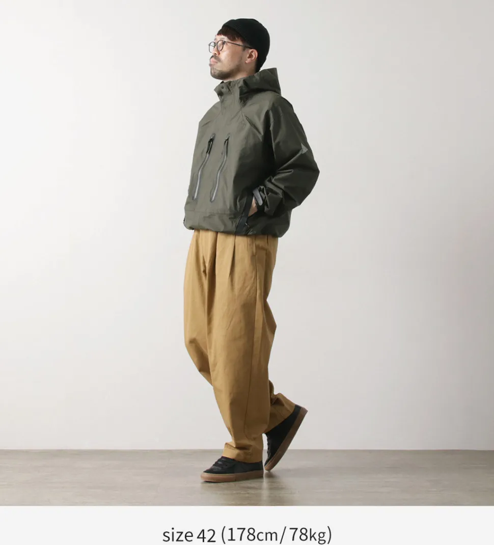 These two-tuck pants have a cocoon-like, rounded silhouette. The thighs alone look quite thick, but when you put them on, they give you a sleek impression. The two-tuck front creates a clean silhouette when you put your hands in the pockets.