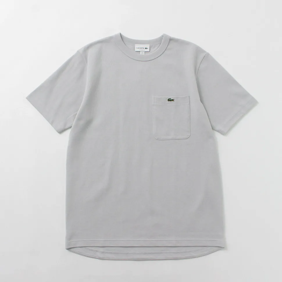 LACOSTE introduces a crew-neck T-shirt with a patch pocket featuring a clock emblem on the left chest. The basic appearance of this T-shirt is simple, but the use of Lacoste’s typical pique fabric, the classic fit silhouette with a moderate amount of room, and the duck tail with a longer back body give this piece a brand-like appearance.