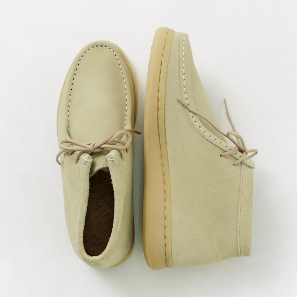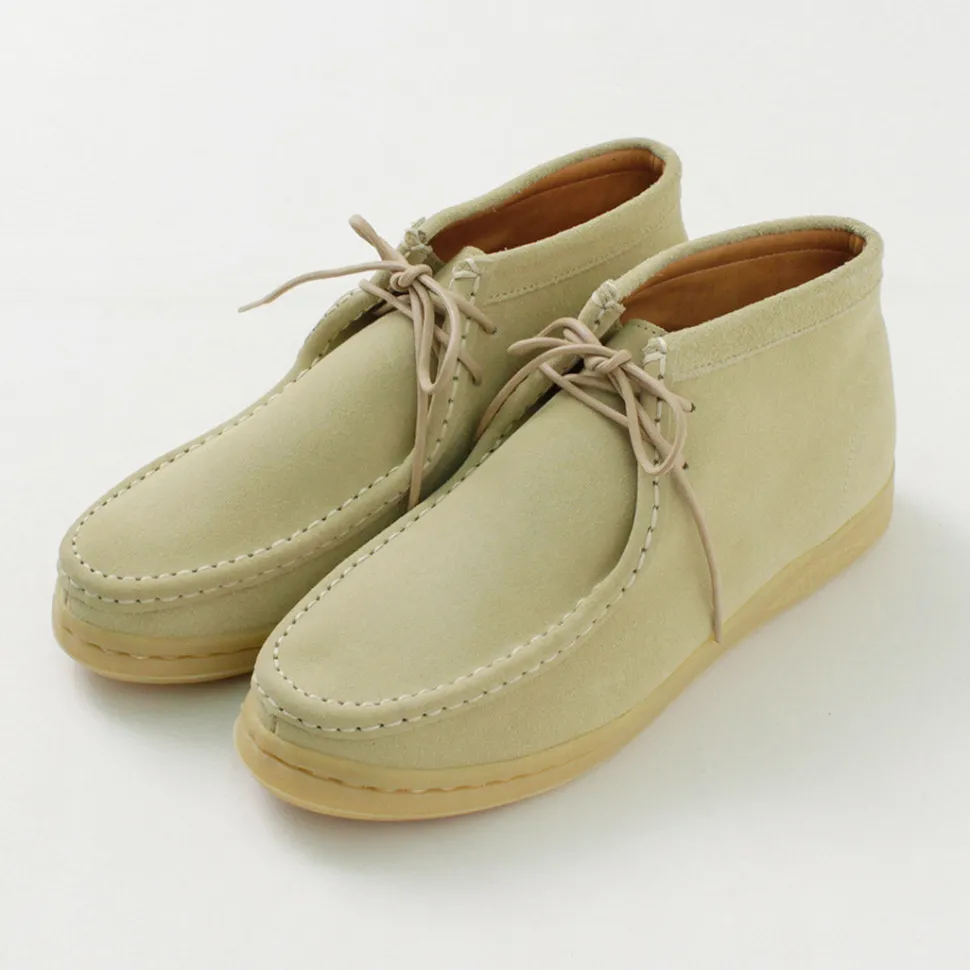 Introducing the “BOO MID,” a classic Wallabee boot by MANEBU that has gained popularity worldwide. It retains the classical design of Wallabee boots but features a sneaker sole with excellent grip suitable for skating. Despite its appearance, it offers a lightweight and comfortable fit, making it suitable for a wide range of styles and occasions.