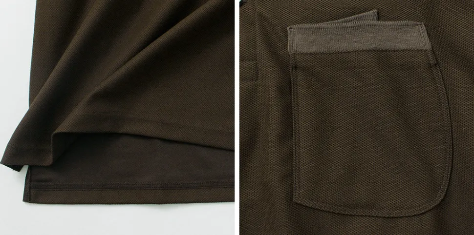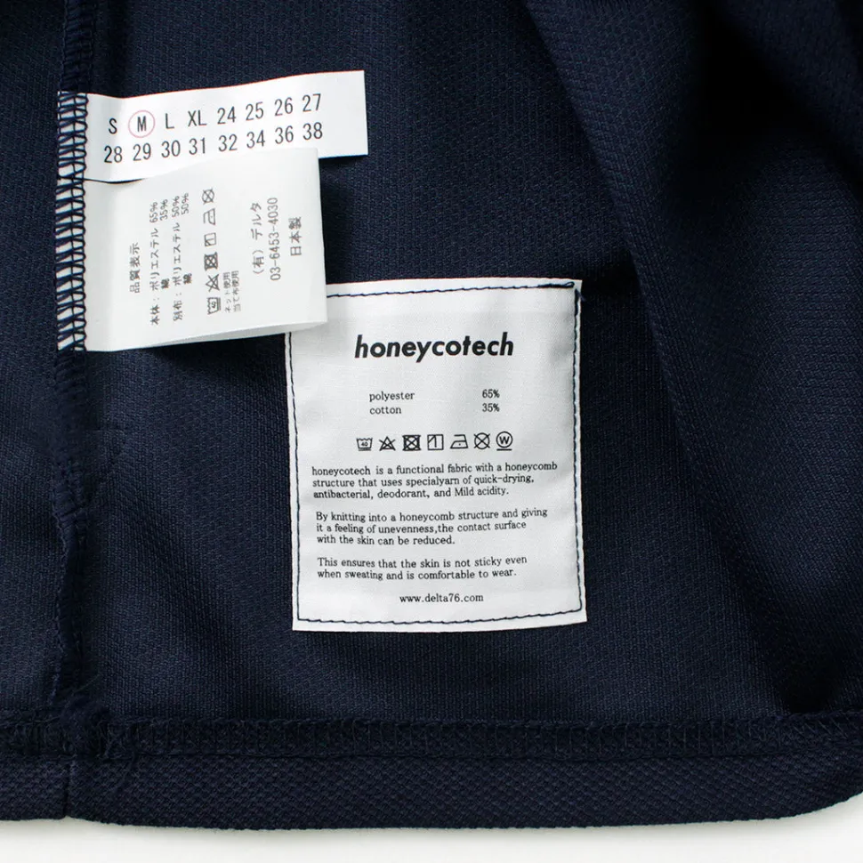 The fabric uses a highly functional HANIKOTEC material with special yarn that is quick-drying, antibacterial, odor-resistant, cool to the touch, and slightly acidic. The fabric is knitted in a honeycomb structure to give it an uneven feel, reducing the surface in contact with the skin and providing a comfortable fit that does not stick to the skin even when sweating.