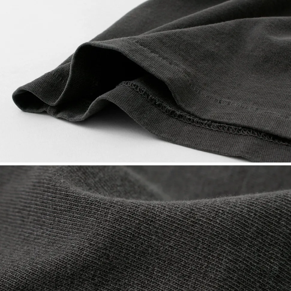 The neck ribbing is uncompromisingly made from dead stock ribbing from the 1970s. The name on the back of the neck is printed rather than tagged, which ensures a comfortable fit without the stress of tingling.