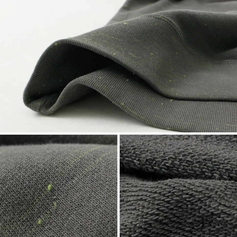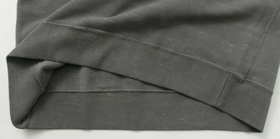MOC T introduces a sweatshirt fabric with product dyeing and neon nep. The neon heather grey, which reproduces marbling with neon-colored threads, looks like a calm one-color from a distance, but when you get closer, the slightest hint of the color accentuates the look. The perfect balance of colors that do not pop too much will add a sophisticated look to your coordination.
