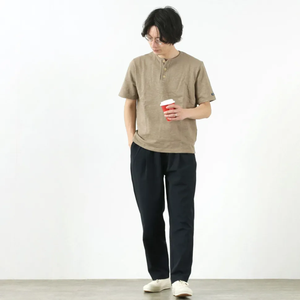 This model has its roots in athletic shoes produced in the 1970s. Elements of athletic shoes, such as the toe cap and reinforced fabric at the footwear opening, have been retained, while the wooden pattern used has been reviewed to create a silhouette that is easy to use in everyday life.