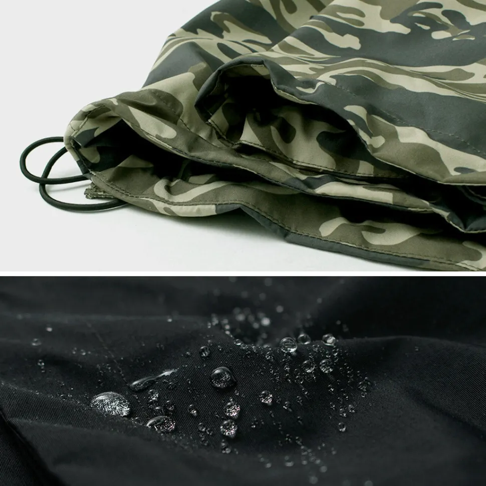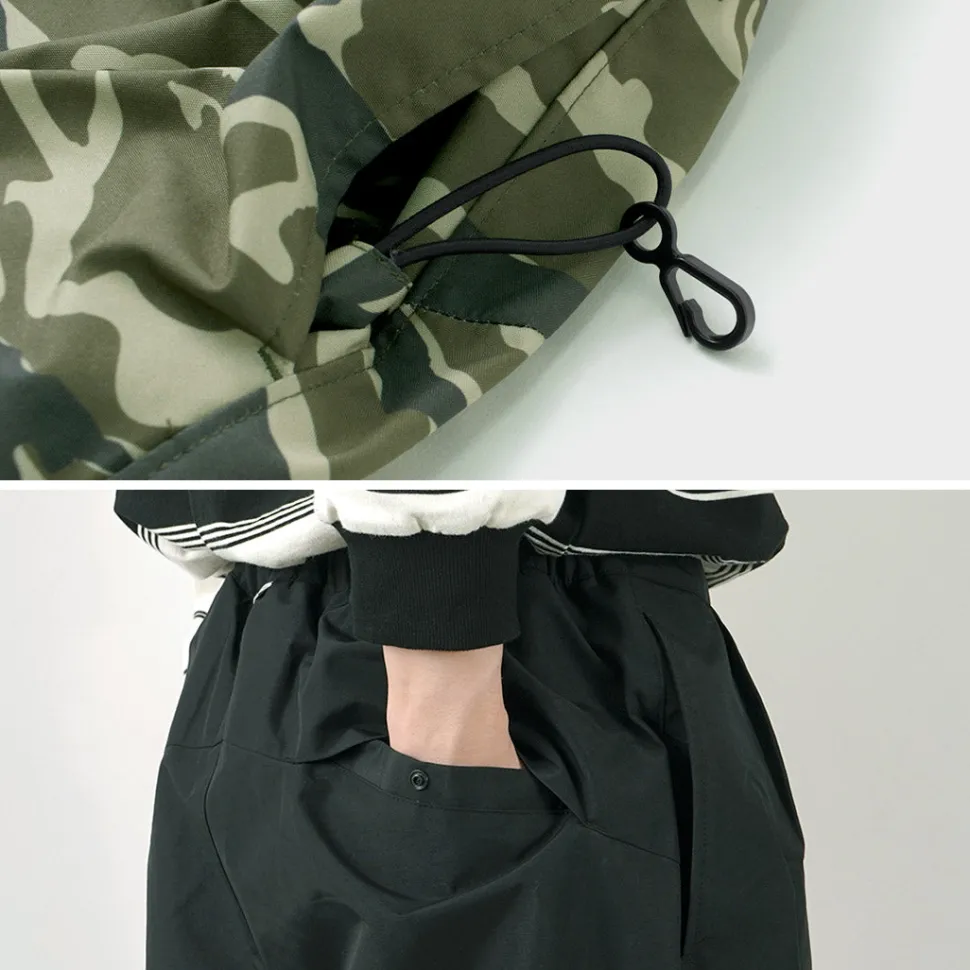 The fabric is made of GORE-TEX INFINIUM WINDSTOPPER fabric 70D nylon 2L. (Khaki Camo is made of 150D polyester for better colorability.) It is lightweight, water-resistant, breathable, and highly windproof. This provides protection from strong winds and rain and comfort in harsh weather conditions.