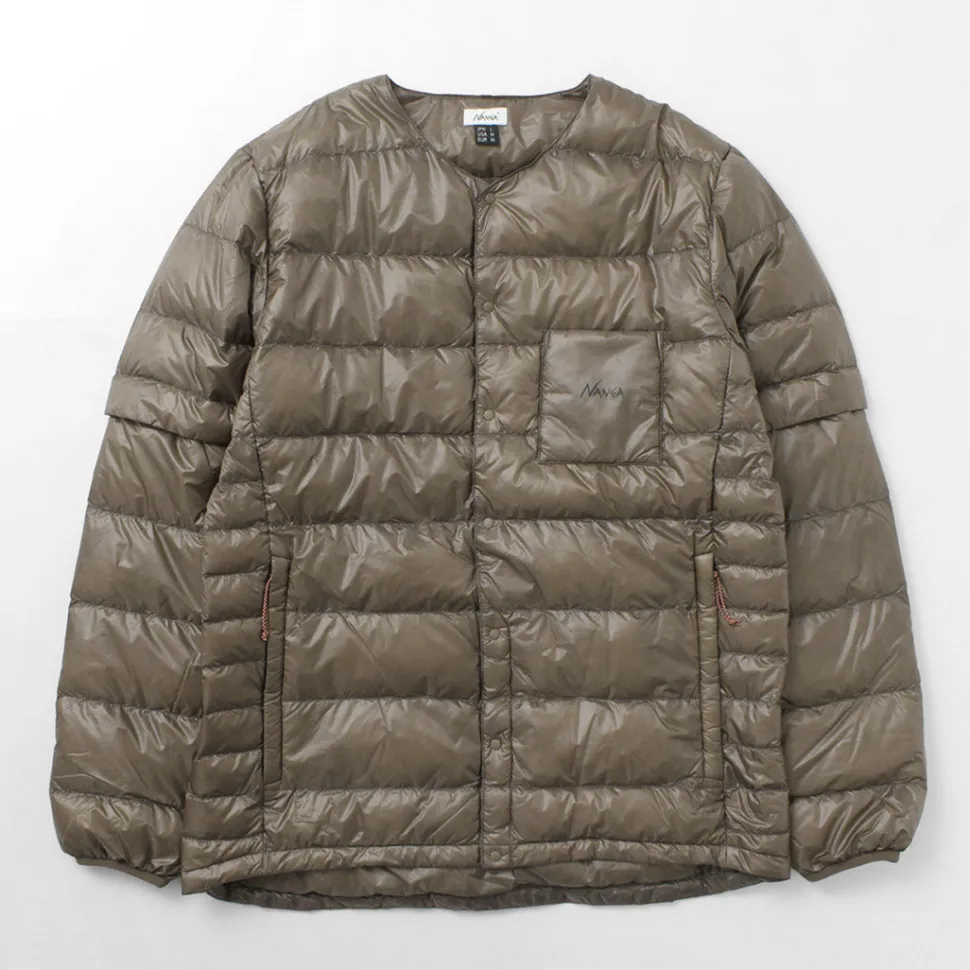 At first glance, this simple down cardigan has detachable sleeves and can be converted into a down tee. It can be worn as inner down as well as outerwear on its own.