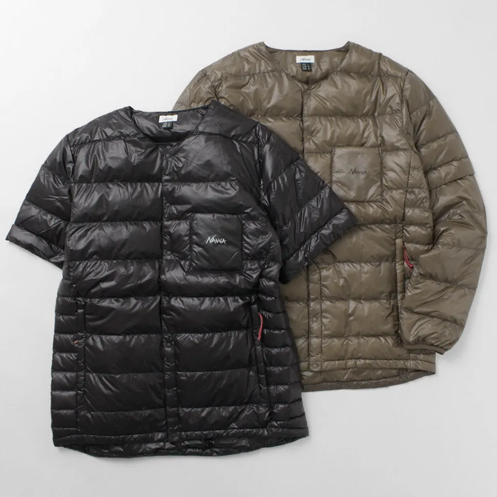 At first glance, this simple down cardigan has detachable sleeves that can be turned into a down tee. It can be worn as inner down or as an outer layer on its own.