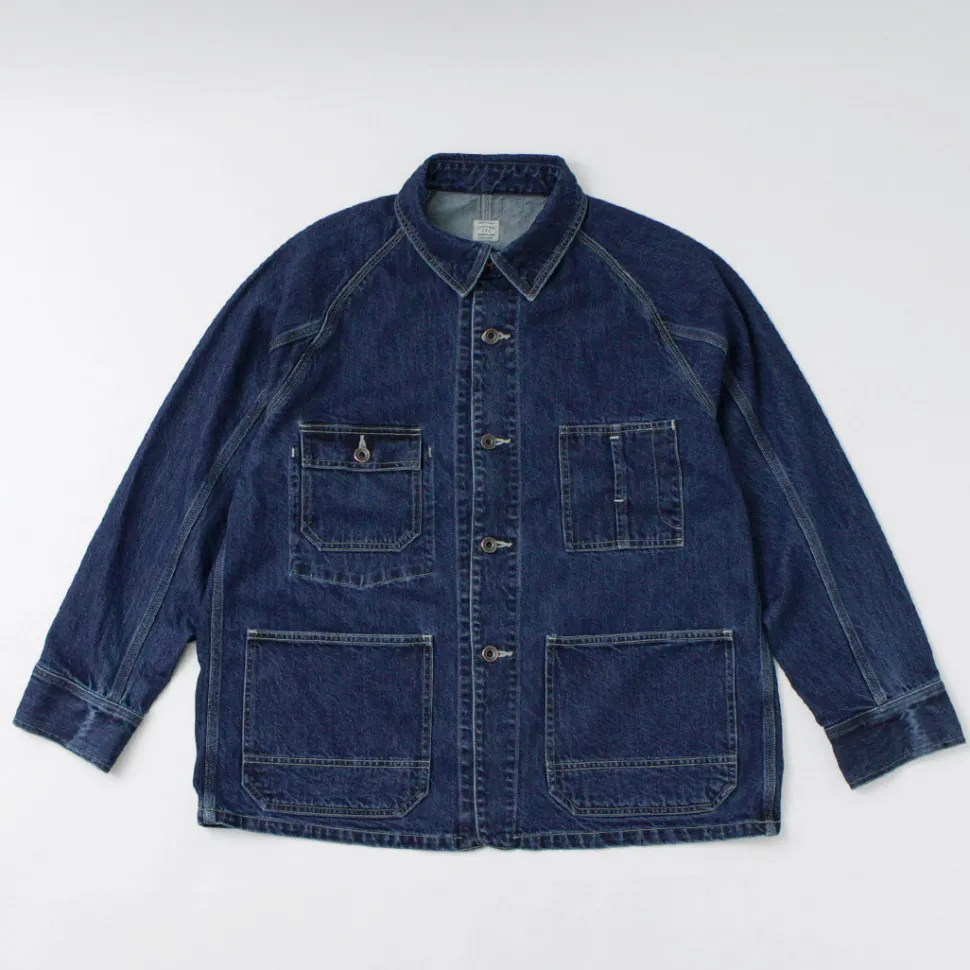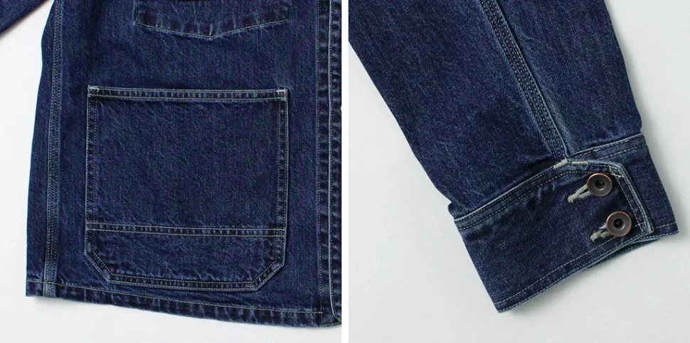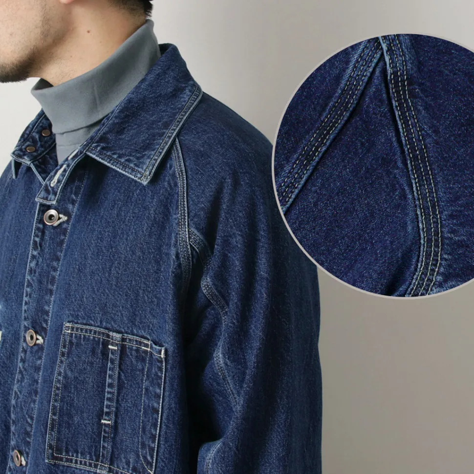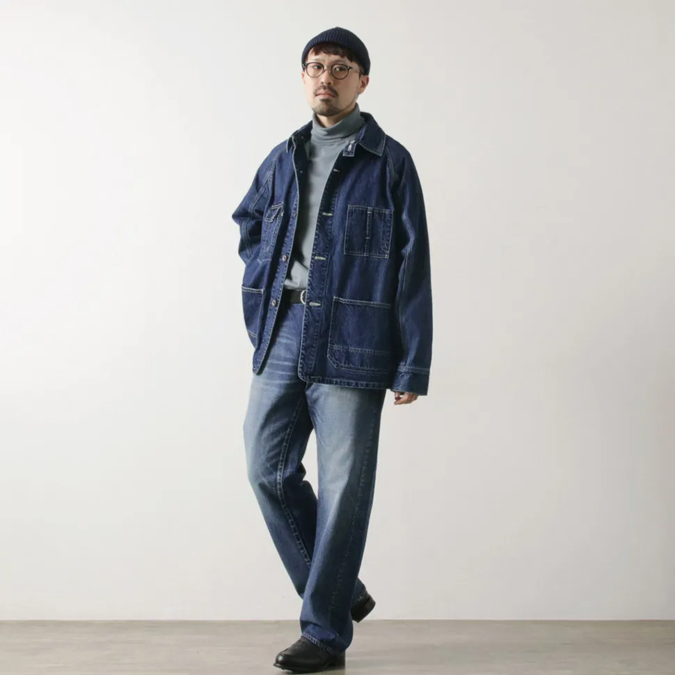 The 11.5-ounce denim fabric has a moist feel with a real vintage-like used look, and just by throwing it on, you can achieve an atmospheric styling.