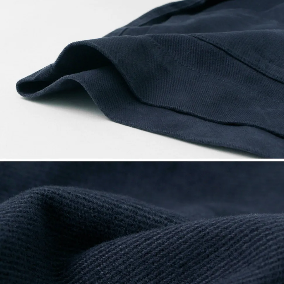 The fabric is made of a cotton twill fabric with a good thickness. It is versatile enough to be worn for a long season, mainly in the chilly season, while adjusting the inner layer.