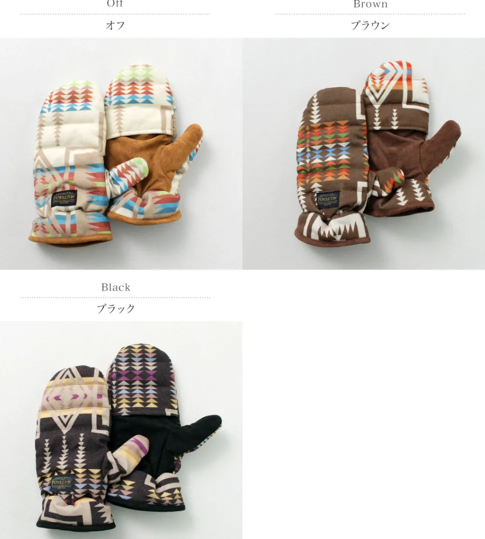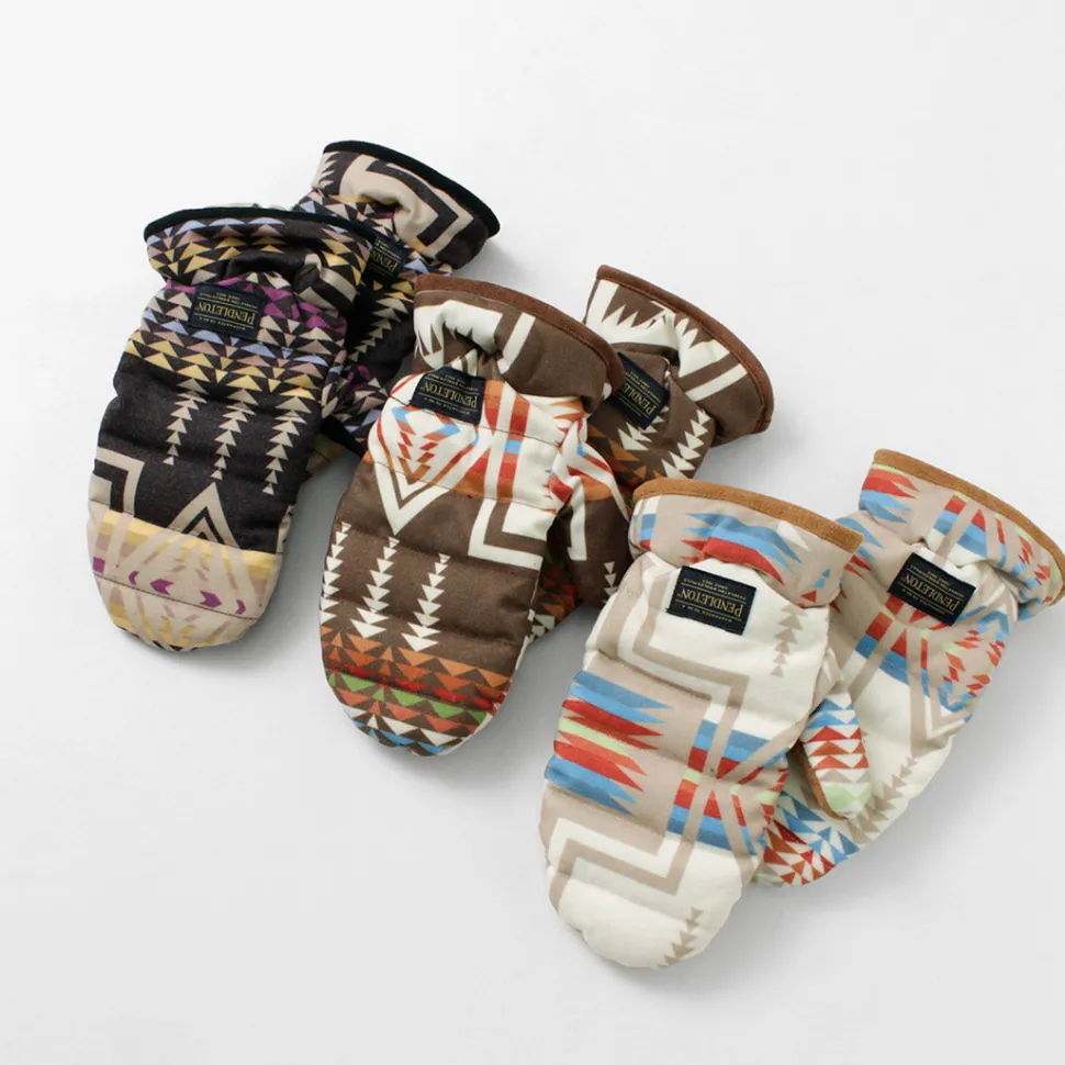 The native pattern unique to PENDLETON is eye-catching. The mittens are luxuriously filled with 90% down, and are comfortable and warm to wear.