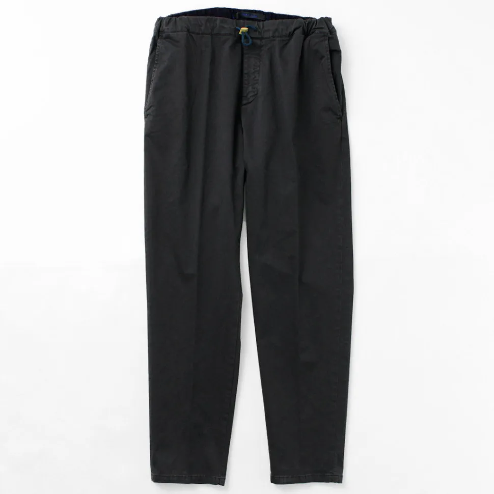 Easy pants with elastic waist and ties Easy pants specification with elastic waistband and ties. The simple design with a clean front allows you to enjoy wearing them with a variety of tops.