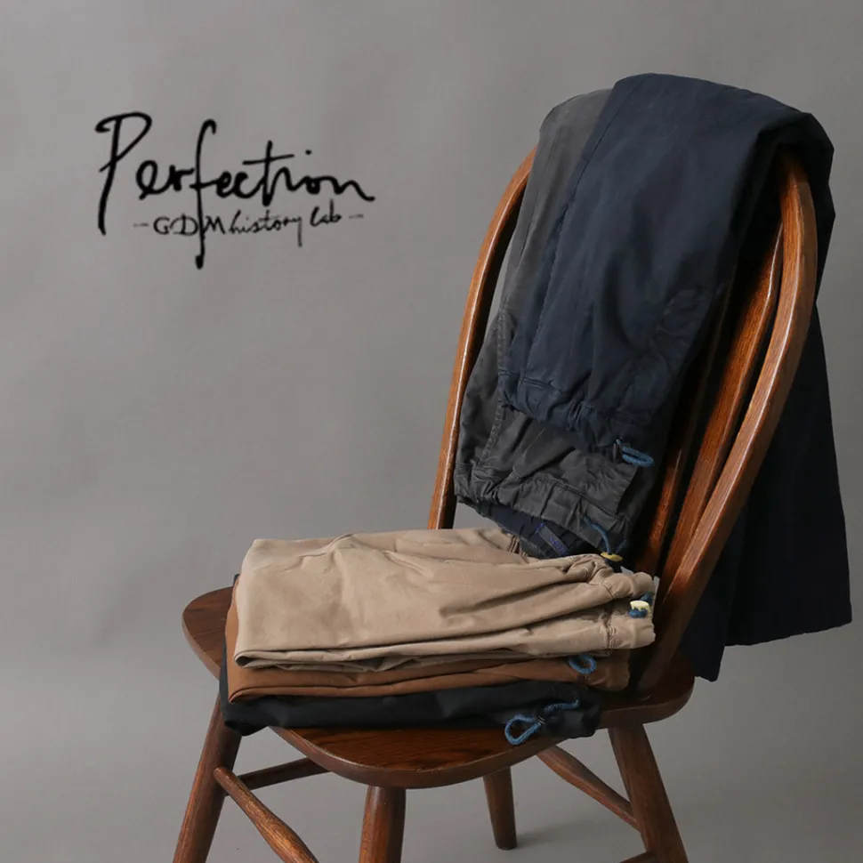 From “PERFECTION,” which produces high quality trousers, we introduce easy pants with a crisp texture like Japanese paper and a faded look. This pair is easy to wear, yet has a beautiful silhouette like slacks, giving it an elegant atmosphere. The elasticity is also sublimated for a more comfortable fit.