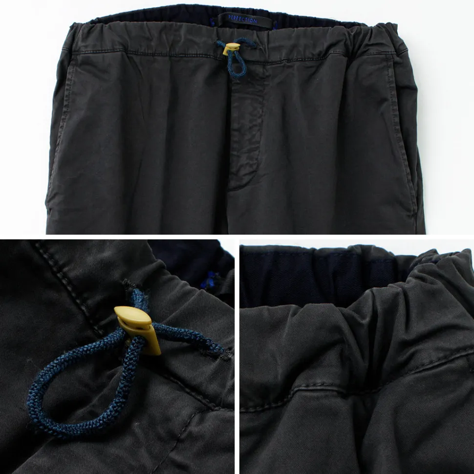 From “PERFECTION”, which produces high quality trousers, we introduce easy pants with a crisp texture like Japanese paper and a faded look. Easy to wear, yet with a beautiful slacks-like silhouette, these pants have an elegant atmosphere. The elasticity is sublimated for even greater comfort. You can enjoy a wide range of coordination from casual to beautiful.