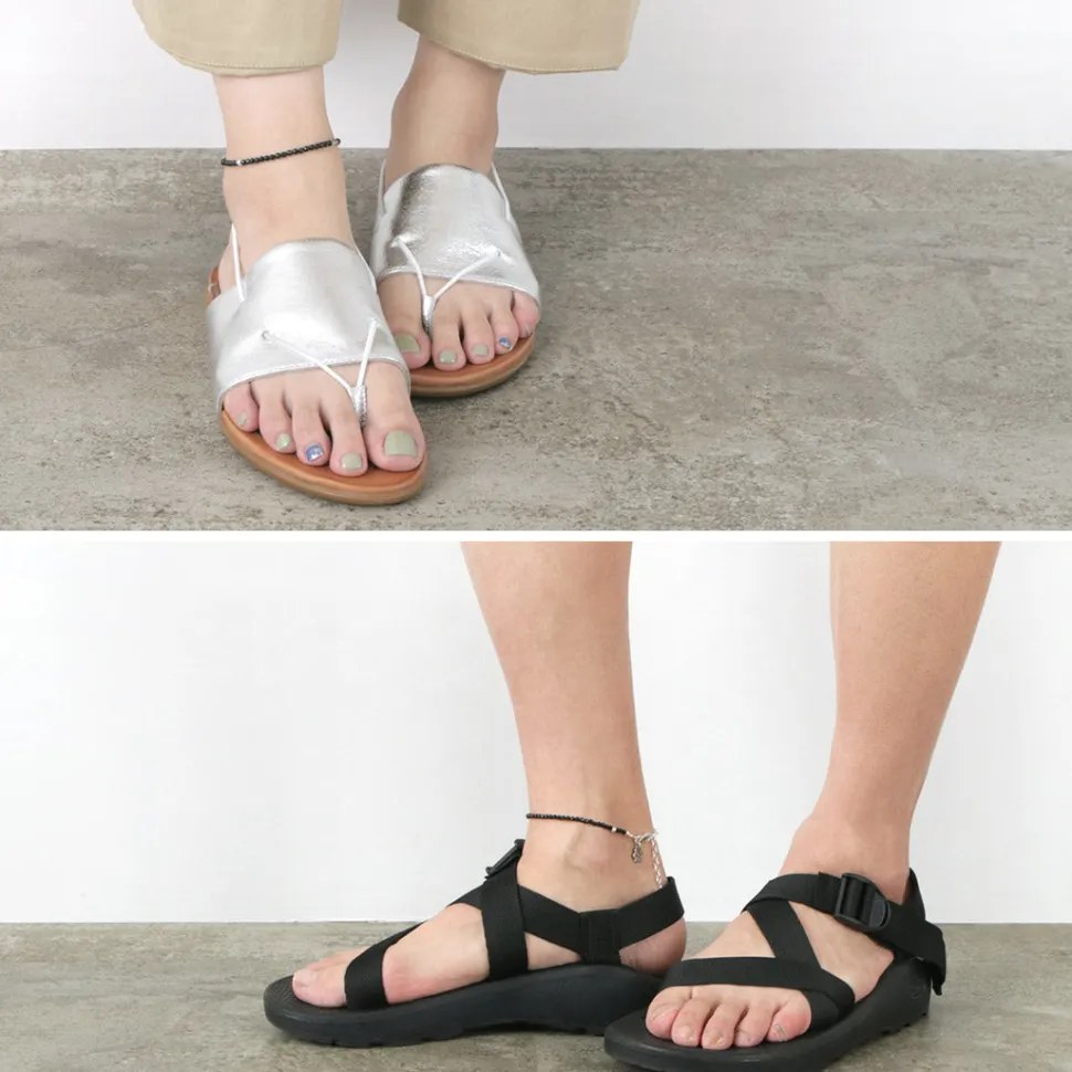 | Anklet designed with beautiful jet-black onyx cut beads and warm Karen silver Black onyx with its unclouded jet-black beauty. The anklet is made of 3mm beads with 32 facets cut to create a deep and powerful black colour. Onyx is a natural stone that is very popular in Japan due to its unclouded beauty and calm, reassuring presence. Onyx has been used since ancient times as an amulet to ward off evil spirits. It is also called a symbol of success, and many people wear it as a stone that guides them to take steady action to achieve their goals. The Karen silver beads are used to bring out the charm of the black onyx, and to great effect The Karen silver is handcrafted one by one. Each piece is individually handcrafted in Karen silver by a small group of mountain tribes in Myanmar and northern Thailand. The purity of Karen silver is approximately 95-99.9%, compared to 92% for most silver jewellery. The muddy luster and elegance of the high purity silver, and the warmth peculiar to the handmade have a simple but strong presence, and the silver is popular in Europe and America. Easy to adjust and remove! The clasp is an easily detachable cantilever. The clasp is easily detachable and comes in two sizes for men and women, and the 5cm adjuster strap allows you to adjust the size and position of the clasp depending on the balance of your style and the volume of your shoes.