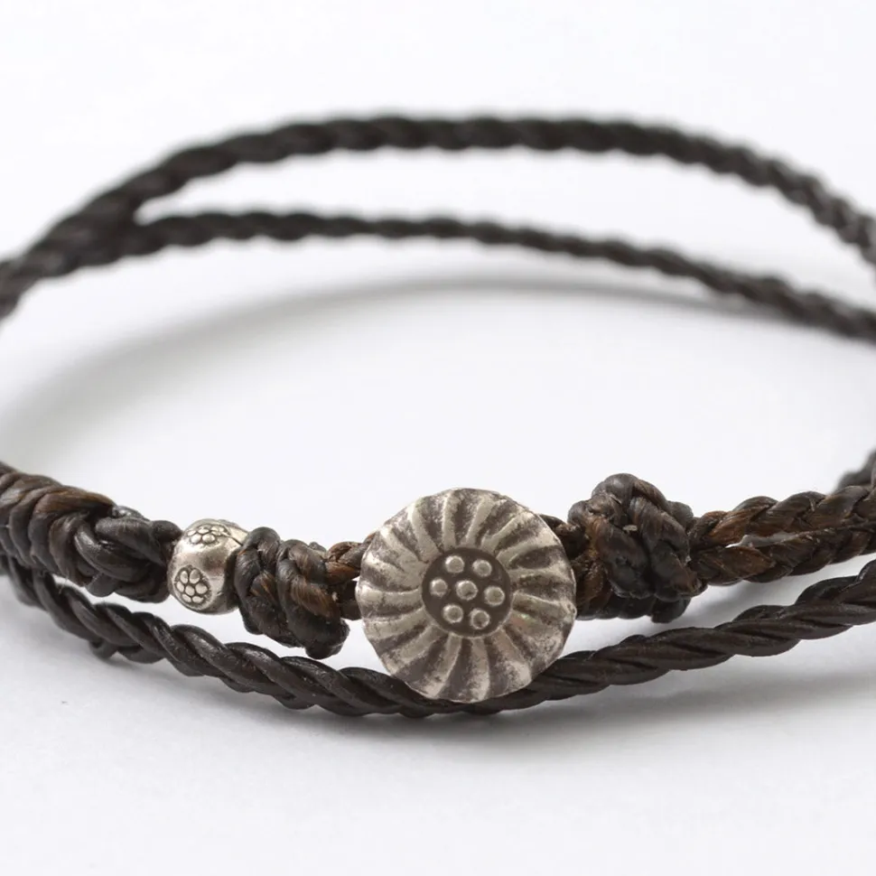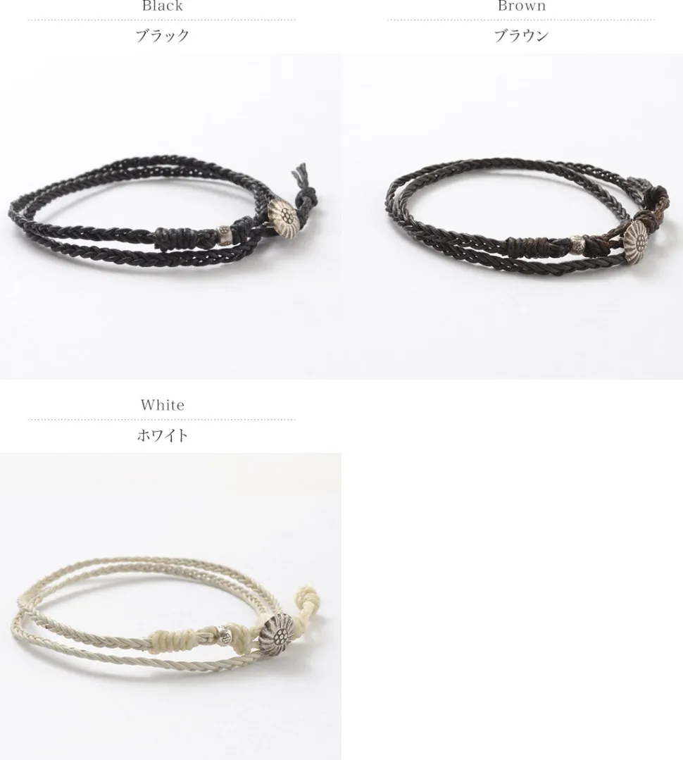 This two-strand anklet combines braided genuine leather cords with warm Karen silver. The handmade Karen silver anklets with different expressions enhance the texture of the leather.