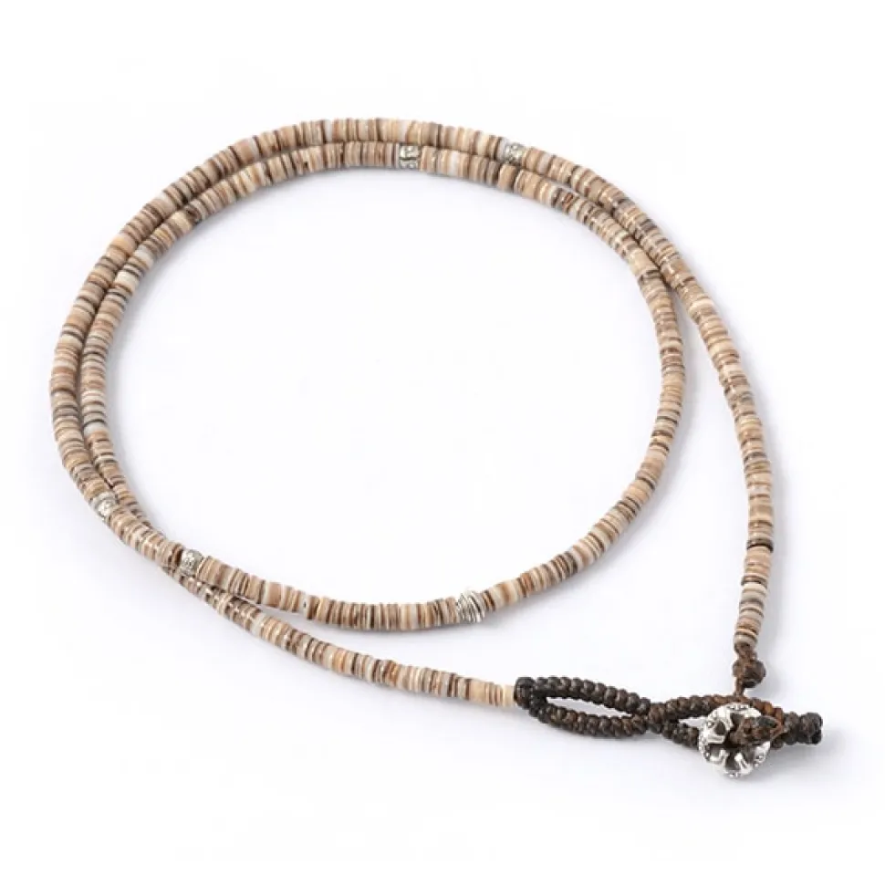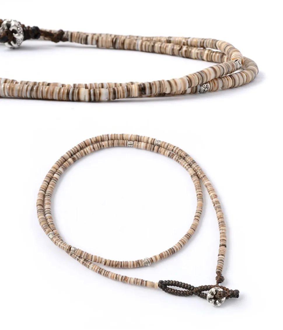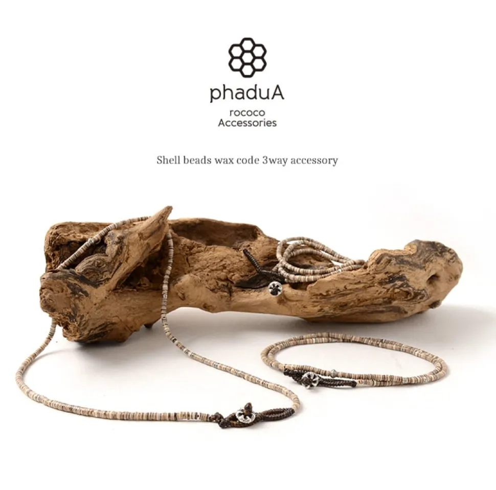 PHADUA / Brown shell beaded waxed cord 3 way accessory