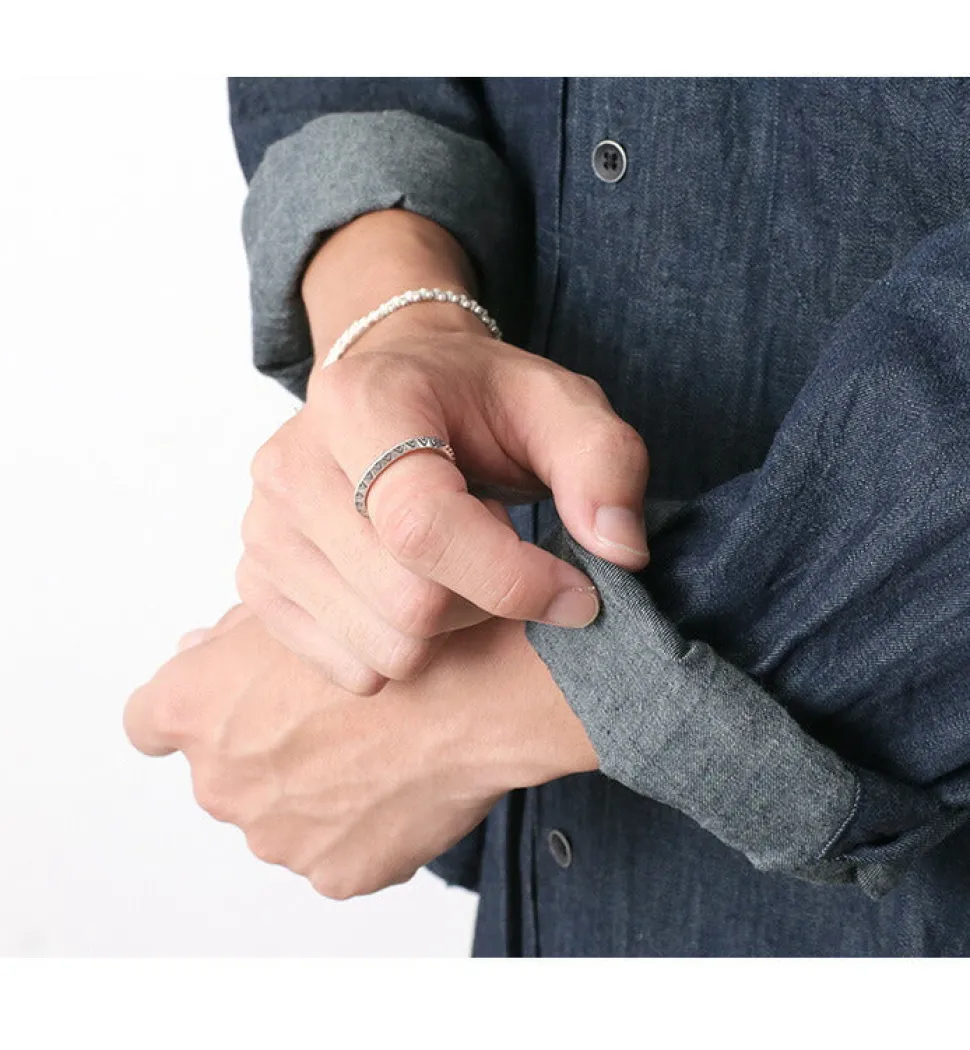 Karen silver rings are completely different from precise machined rings with beautiful artistic and delicate patterns. Each ring is made one by one by hand, giving each one a different look. The warmth and individuality of this ring is a unique charm of Karen silver. This one has a beautiful diamond pattern design with a series of diamond shapes. The beautiful stamp work looks like a work of art and gives it a solid presence. Amulet Karen Silver has a variety of shapes and engravings, and is designed with motifs of plants, animals, fish, or household tools. It is also used as a talisman to protect against evil spirits and as a watchful eye to guard against calamities. It is an open-ring design that can be used by both men and women, and the size can be easily adjusted. The design can be worn by any gender, and is recommended as a pair ring or a gift.
