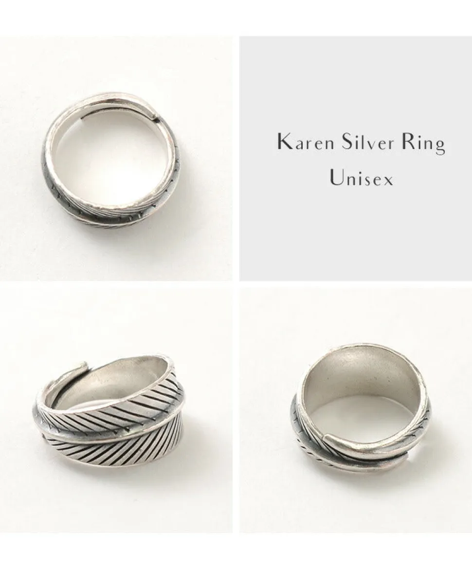 The bold leaf pattern of the Karen silver ring gives it a strong presence, which is completely different from precise machining. Each ring is handcrafted one by one, giving each one a different look. The warmth and individuality of this ring is a unique charm of Karen silver. This one has a bold leaf pattern design that wraps around the finger. The strong stamp work and the wide shape with a sense of massiveness give it a finish with a sense of presence. The amulet Karen Silver has various shapes and engravings with meanings embedded in the engraving. It is designed with motifs of plants, animals, fish, or household tools around us. It is also used as a talisman to protect against evil spirits and as a watchful eye to guard against calamities. It is an open-ring design that can be used by both men and women, and the size can be easily adjusted. The design can be worn by any gender, and is recommended as a pair ring or a gift.