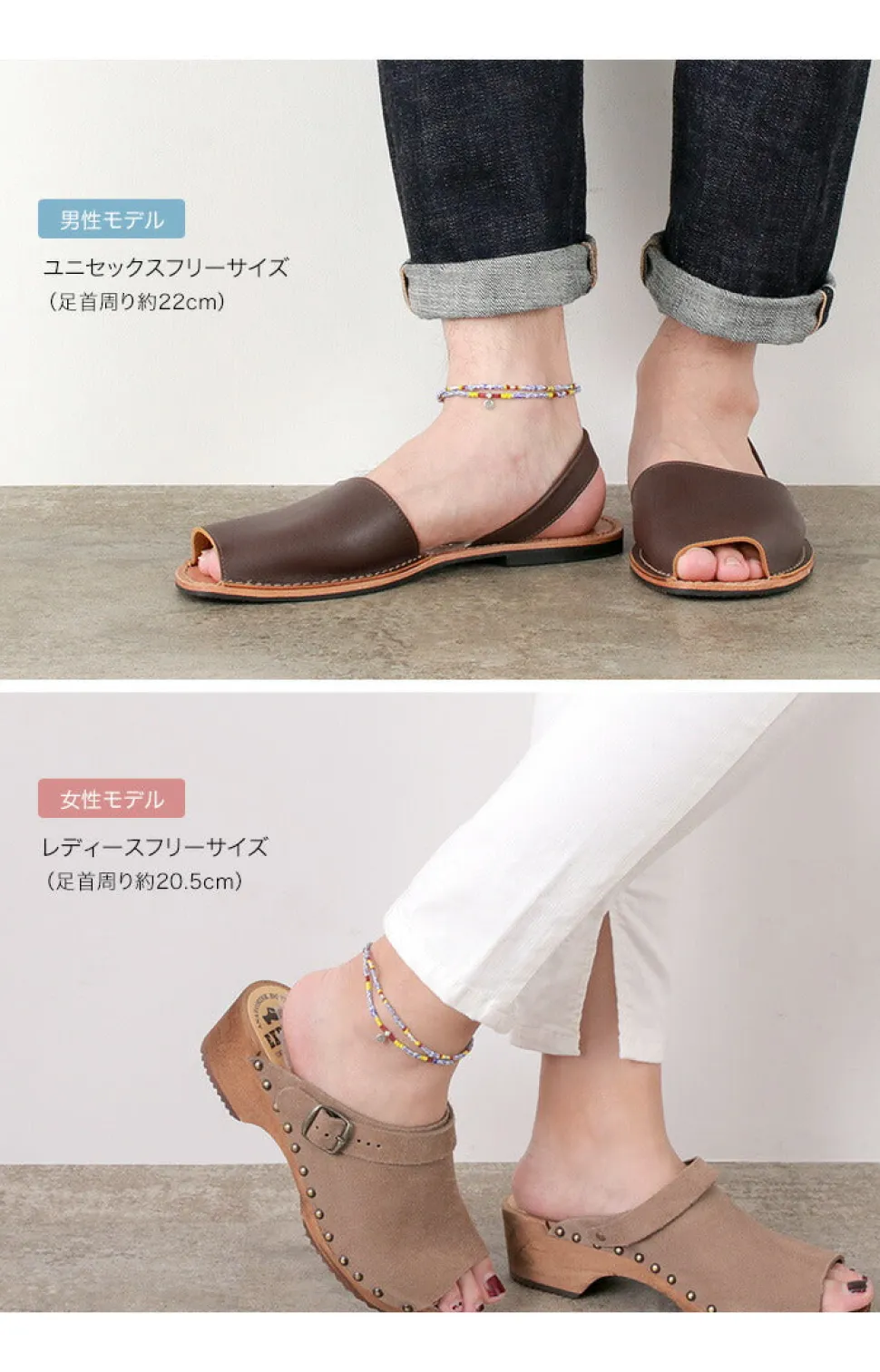 Brightly colored beads that match the summer weatherThis gorgeous anklet is lined with antique handmade beads. The colorful beads will decorate your hand vividly. The anklet is made of a water-resistant cord, so you can leave it on even when you are at the beach or pool! This is a perfect accessory for summer that combines both design and practicality. The clasp is made of durable wax cord. The clasp is made of a durable wax cord that can be adjusted to your desired size by pulling the cord. The thin cord is easy to pull and easy to remove. The color will not fade or shift even in sweat or rain, and is also used as a material for surfers’ accessories. Available in two sizes for unisex use. It is a perfect item for a pair of accessories or as a gift.