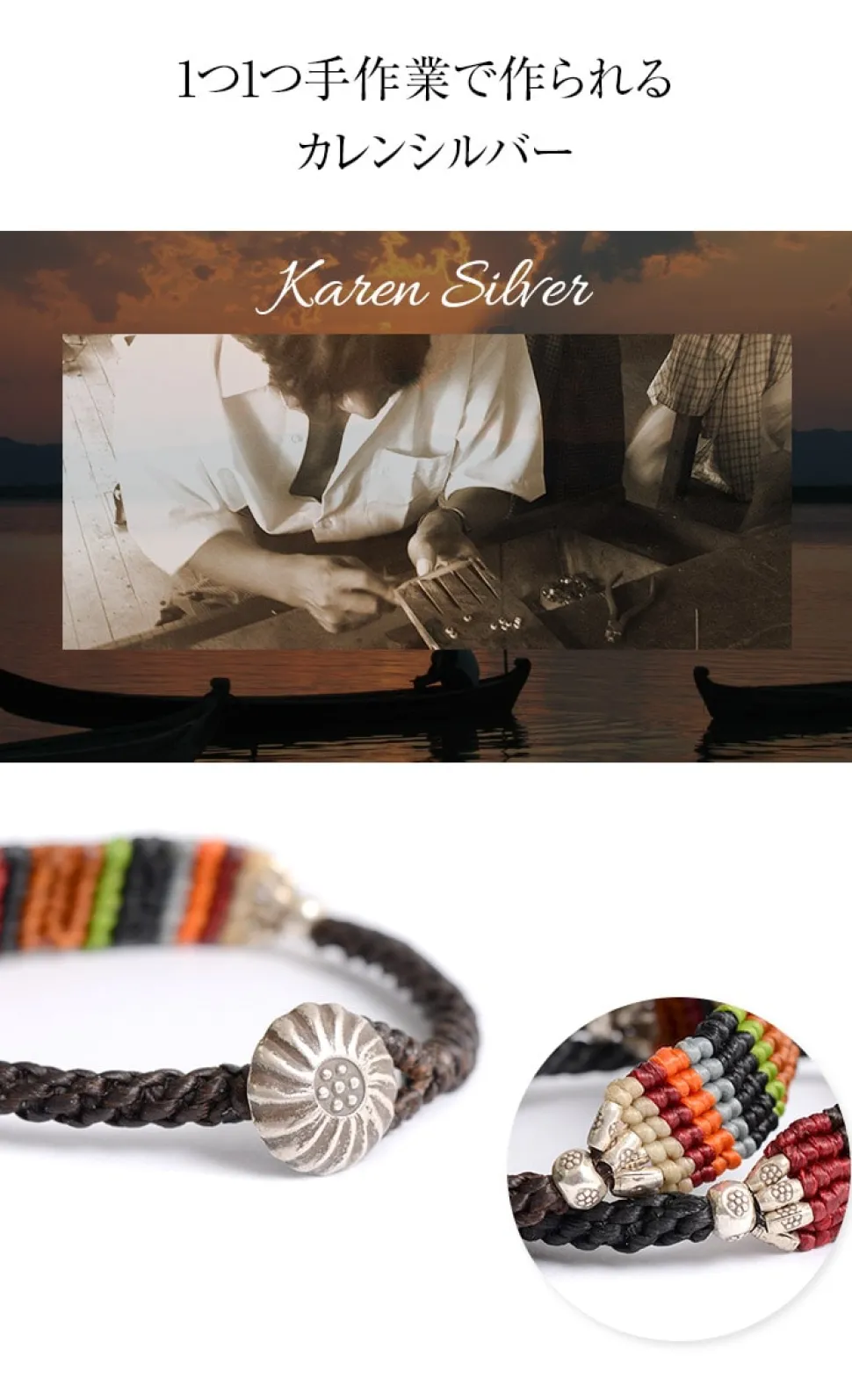 The warmth of the look is the main attraction of the handmade Karen silver, with each piece having a slightly different shape. It is a simple yet striking piece of silver that is very popular in Europe and the United States. Each piece of Karen silver has its own detailed pattern, which shows the craftsmanship of the artisan.