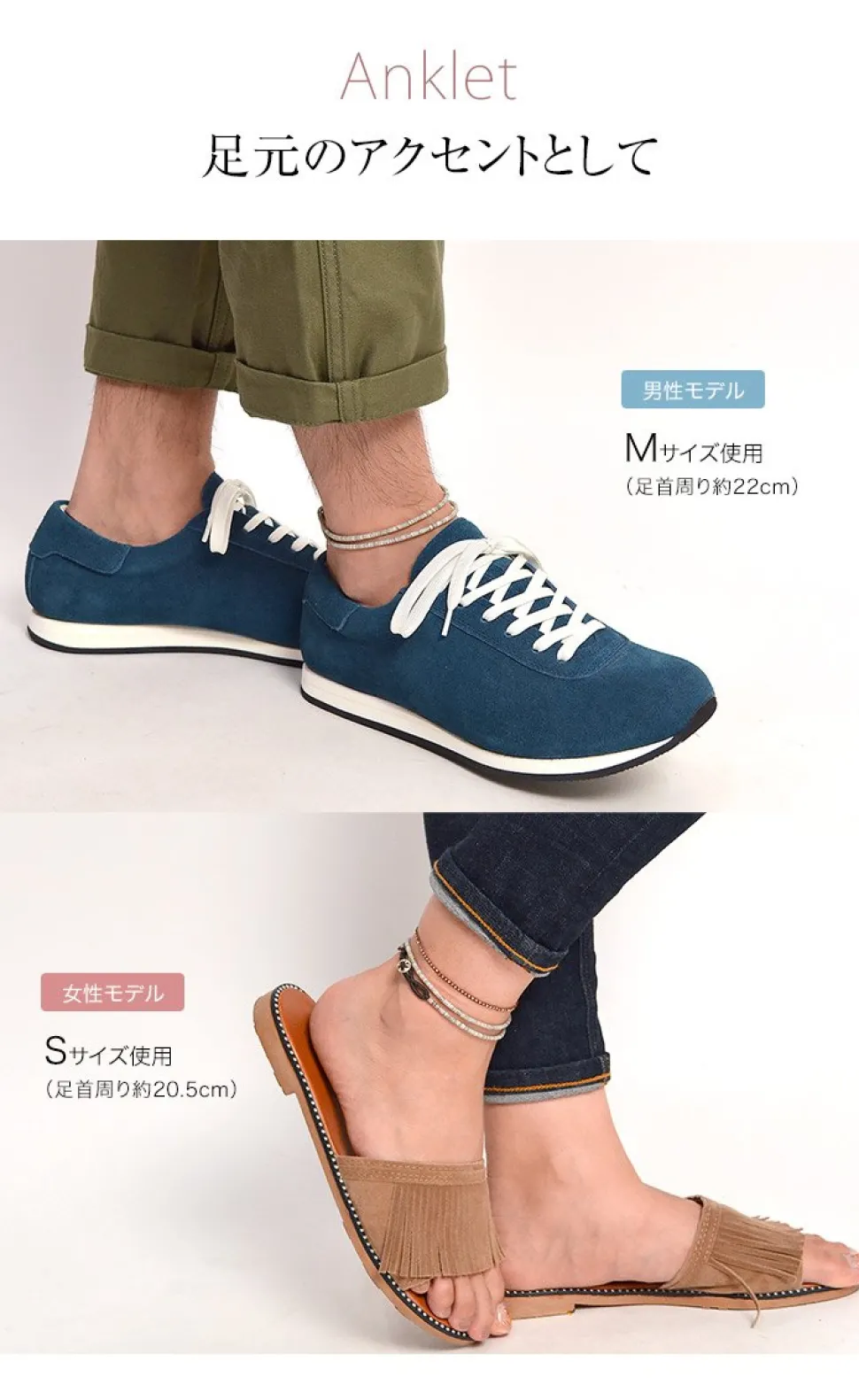 The anklet can be worn “double wrapped”. The anklet can be worn as a ‘double-wrapped’ anklet, making it an attractive accessory that adds a touch of style and a subtle accent to your feet.