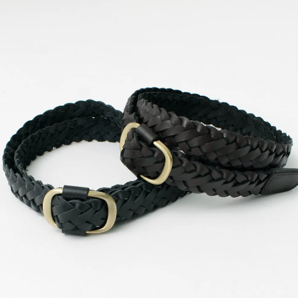 The buckle is made of brass with an oval shape for a sophisticated atmosphere. It is securely fastened with careful hand stitching.