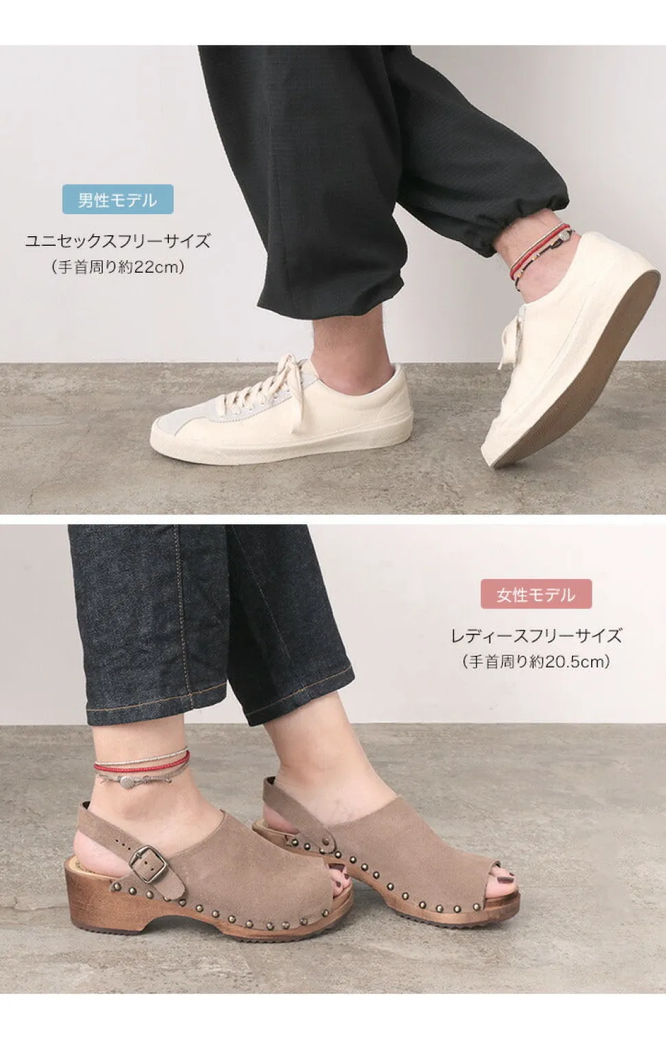 A two-stranded anklet with a combination of different materials to color your feet. The two-strand design combines eye-catching white heart beads with warm Karen silver. They are water-resistant and can be left on to enjoy summer activities! This item is sure to enhance your summer style as a coordinating accent. You can leave it on all day! You can wear it in the shower, bath, pool, or ocean without getting sticky. It is water resistant and will not fade or shift colors due to sweat or rain, and is also used as a material for surfers’ accessories. Available in two sizes for unisex enjoyment. It is also a perfect item for pair accessories and gifts. It can also be worn in layers depending on your mood, purpose, or location. It goes well with other cord and bead accessories.