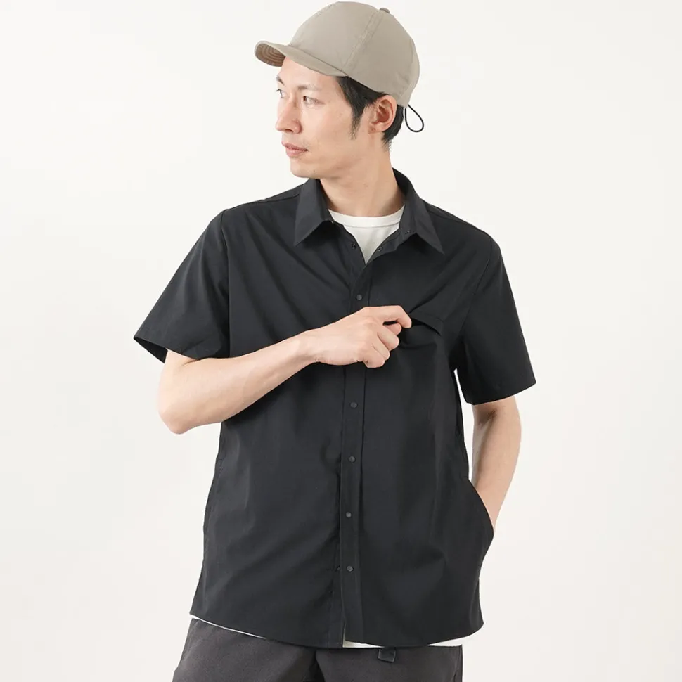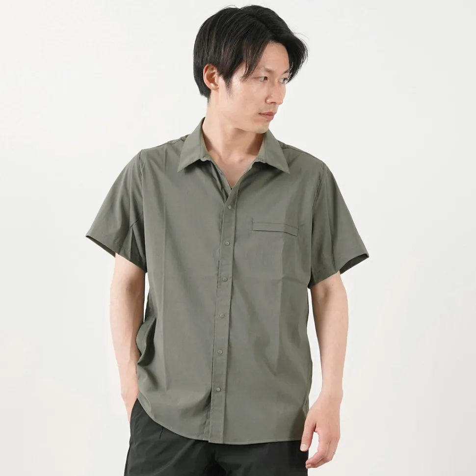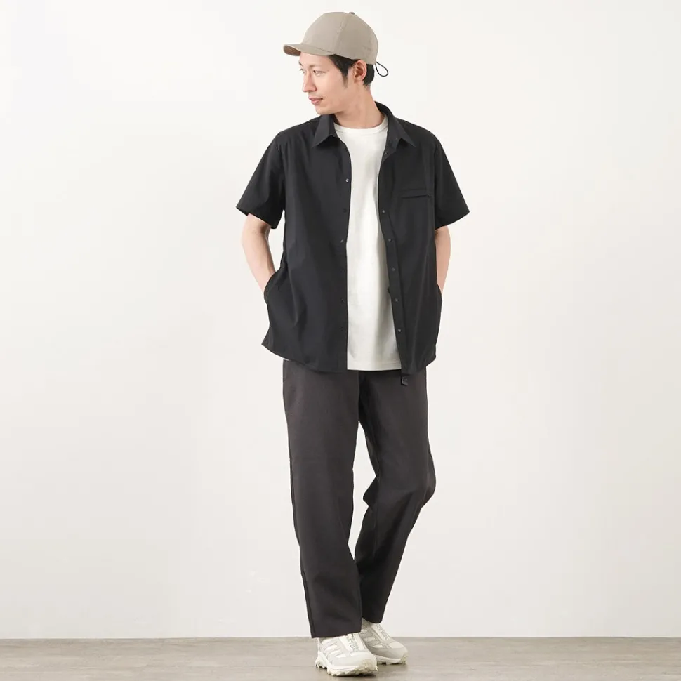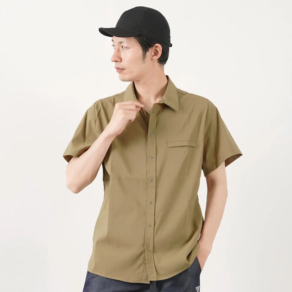 This short-sleeved shirt incorporates functional materials and technical pattern-making. The three-dimensional sewing used for jackets is incorporated around the shoulders, giving this item a beautiful silhouette that cannot be experienced in ordinary casual shirts. The fabric has excellent elasticity and quick-drying properties, allowing you to enjoy the functionality of outdoor wear.