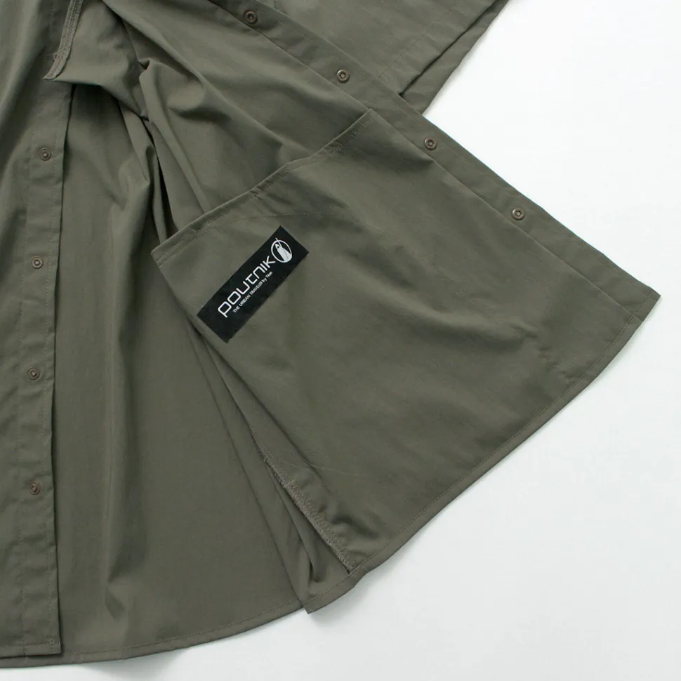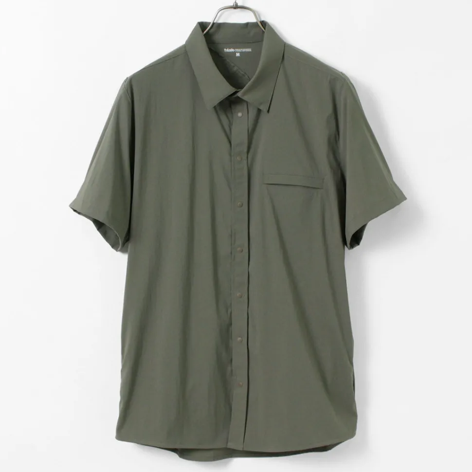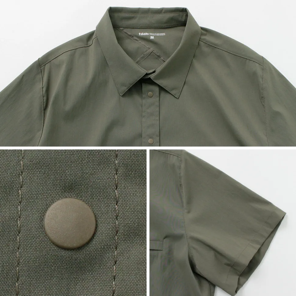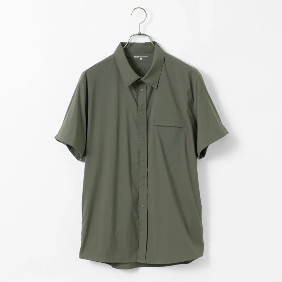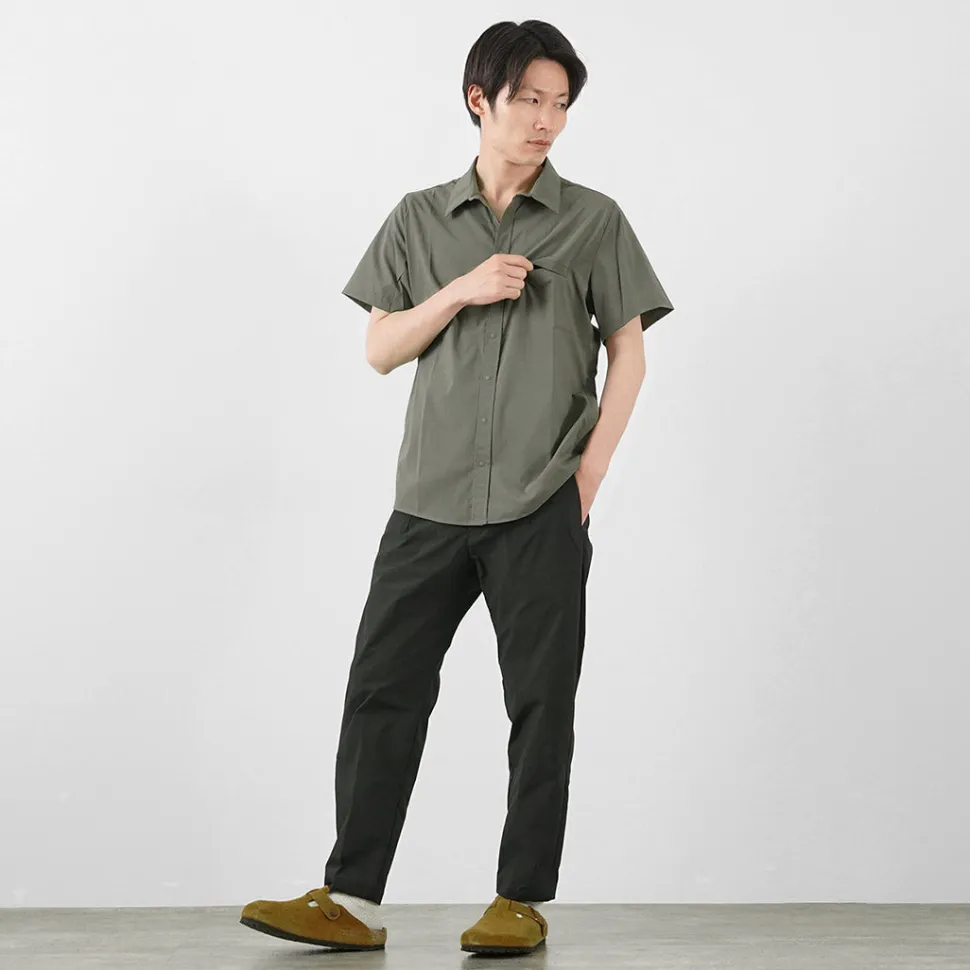 This short-sleeved shirt incorporates functional materials and technical pattern-making. The three-dimensional sewing used for jackets is incorporated around the shoulders, giving this item a beautiful silhouette that cannot be experienced in ordinary casual shirts. The fabric has excellent elasticity and quick-drying properties, allowing you to enjoy the functionality of outdoor wear.