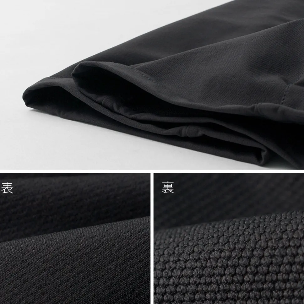 The fabric is made of a high-performance stretch nylon material with a matte texture that stretches in four directions and has an uneven back surface that feels dry against the skin and offers excellent breathability, making it easy to move around and comfortable to wear even when sweating.