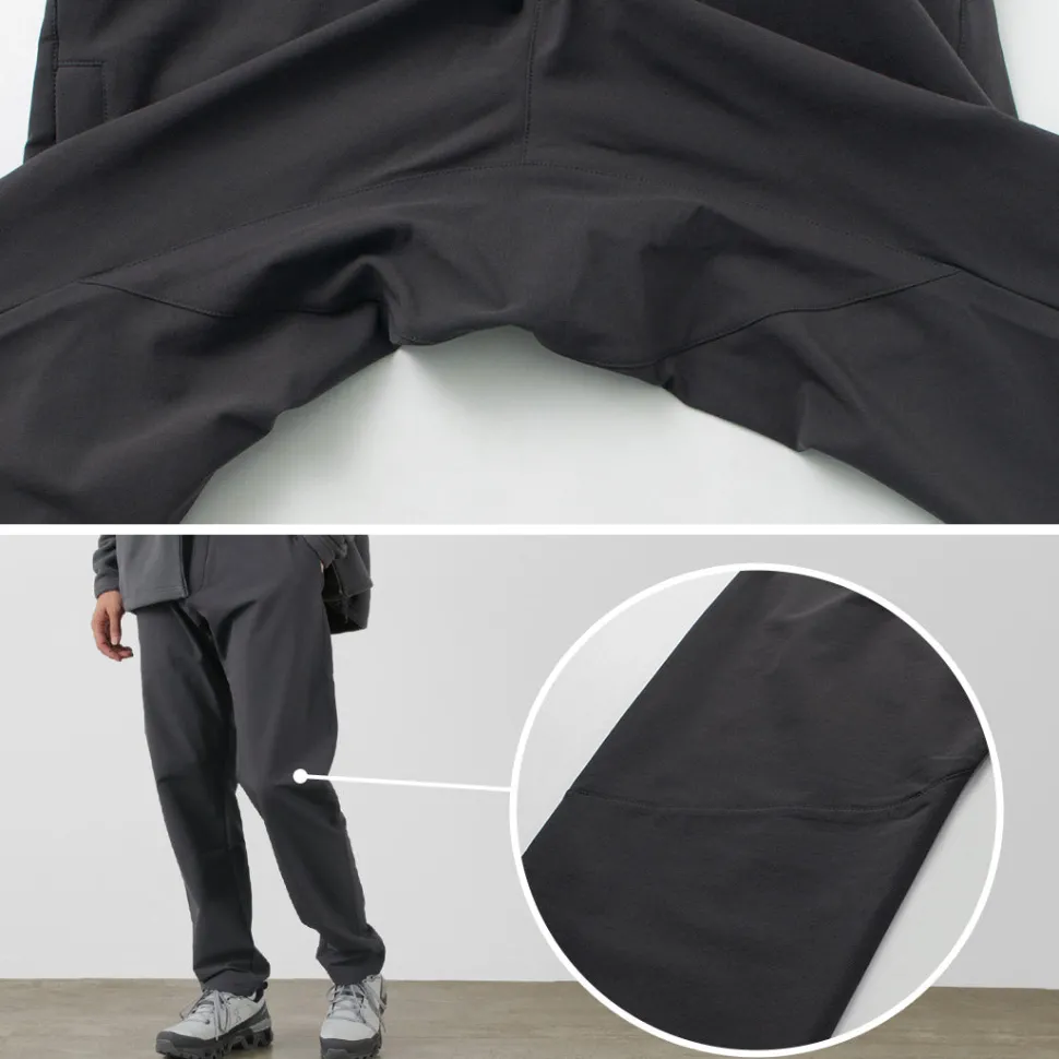 The cut of the knee portion is three-dimensionally sewn, and the inseam has a gusset to support leg opening, which, combined with the stretchiness of the fabric, provides a stress-free fit.