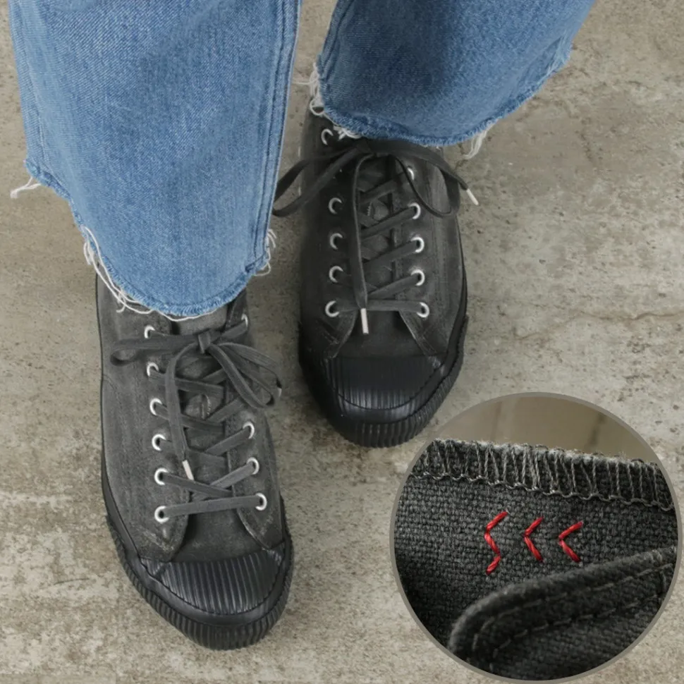 Even the shoe laces are dyed with sumi ink to preserve the dyed texture.