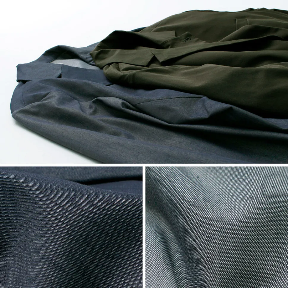 The fabric is a cotton-based blend of polyester and nylon. In addition to its smooth texture, the degree-filled weave gives it a lustre, and while it is a functional material, it does not detract from its elegant appearance. The fabric is also stretchable, so it is easy to put on over the top and does not feel constrictive.