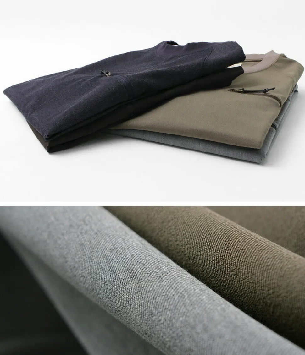 This long-sleeved T-shirt is derived from RAG’s popular spring/summer item ‘Ice T’. Despite the clean look of the fabric, it is a functional material that provides a comfortable temperature. This one is made in Oshu and features deep colours and a rich drape. The
