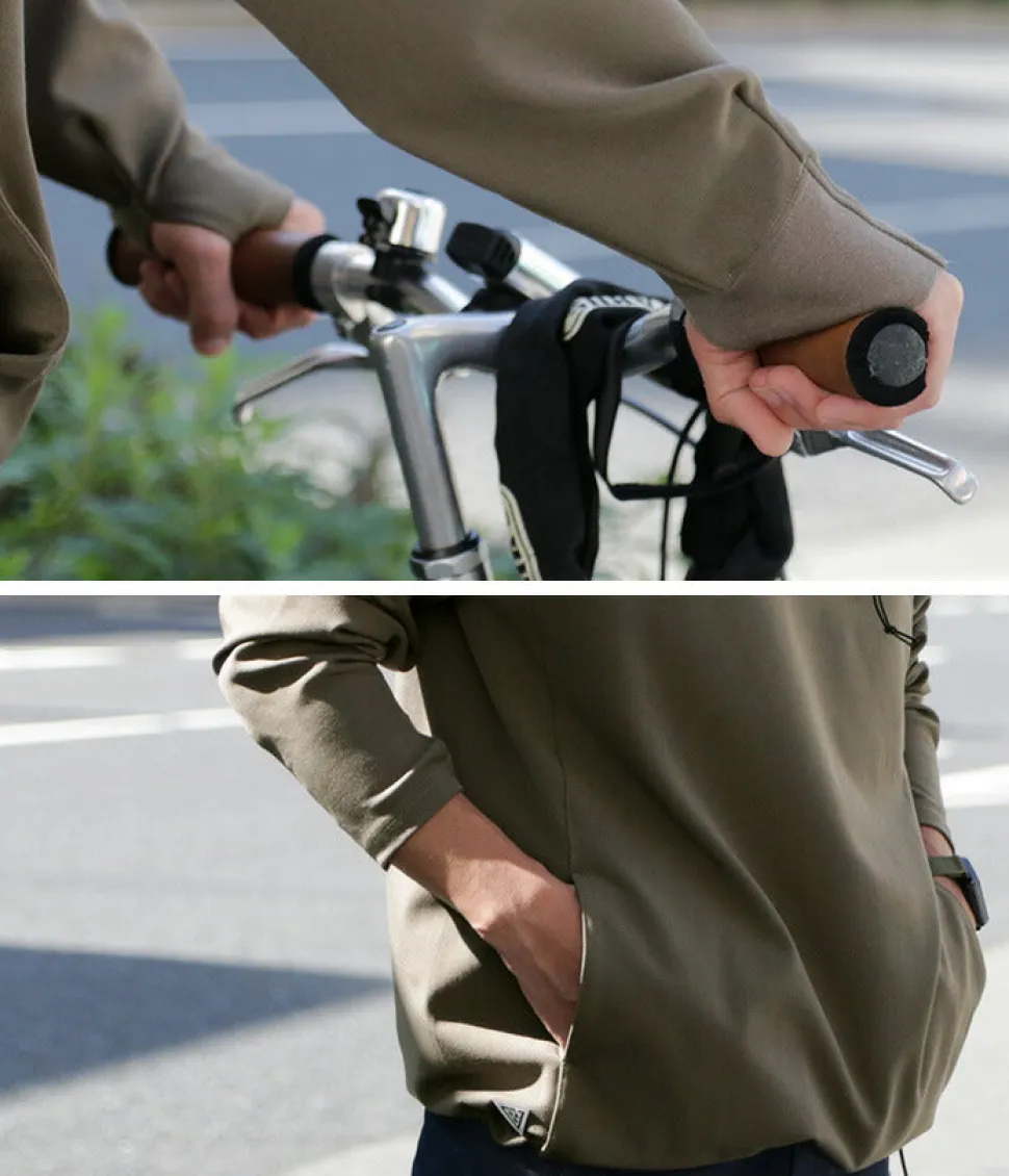 thumbhole, the back of the hand is wrapped up to the back of the hand, which is perfect for autumn and winter when it gets cold. By putting your fingers through, you don’t have to worry about misalignment. When the sleeves are rolled up, the milled fabric keeps the rolled up cuffs in place.