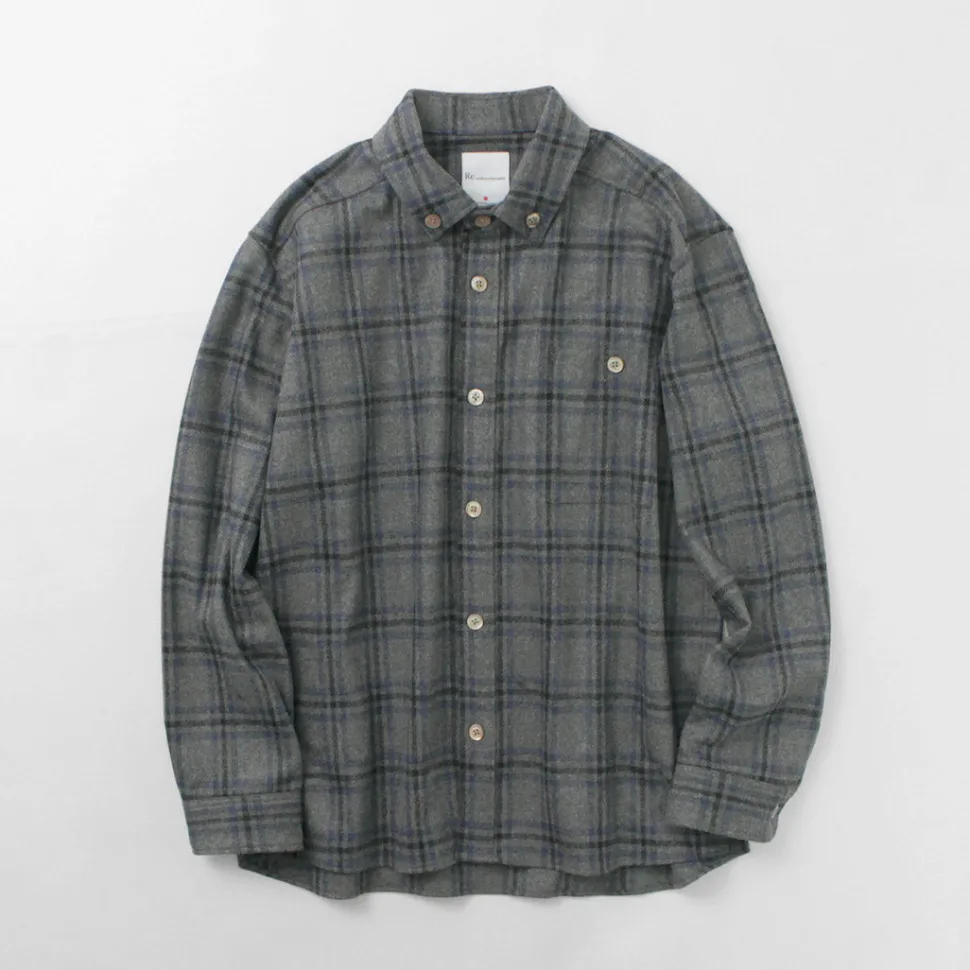 This button-down shirt is characterized by its soothing colors and warm wool fabric with a good thickness.